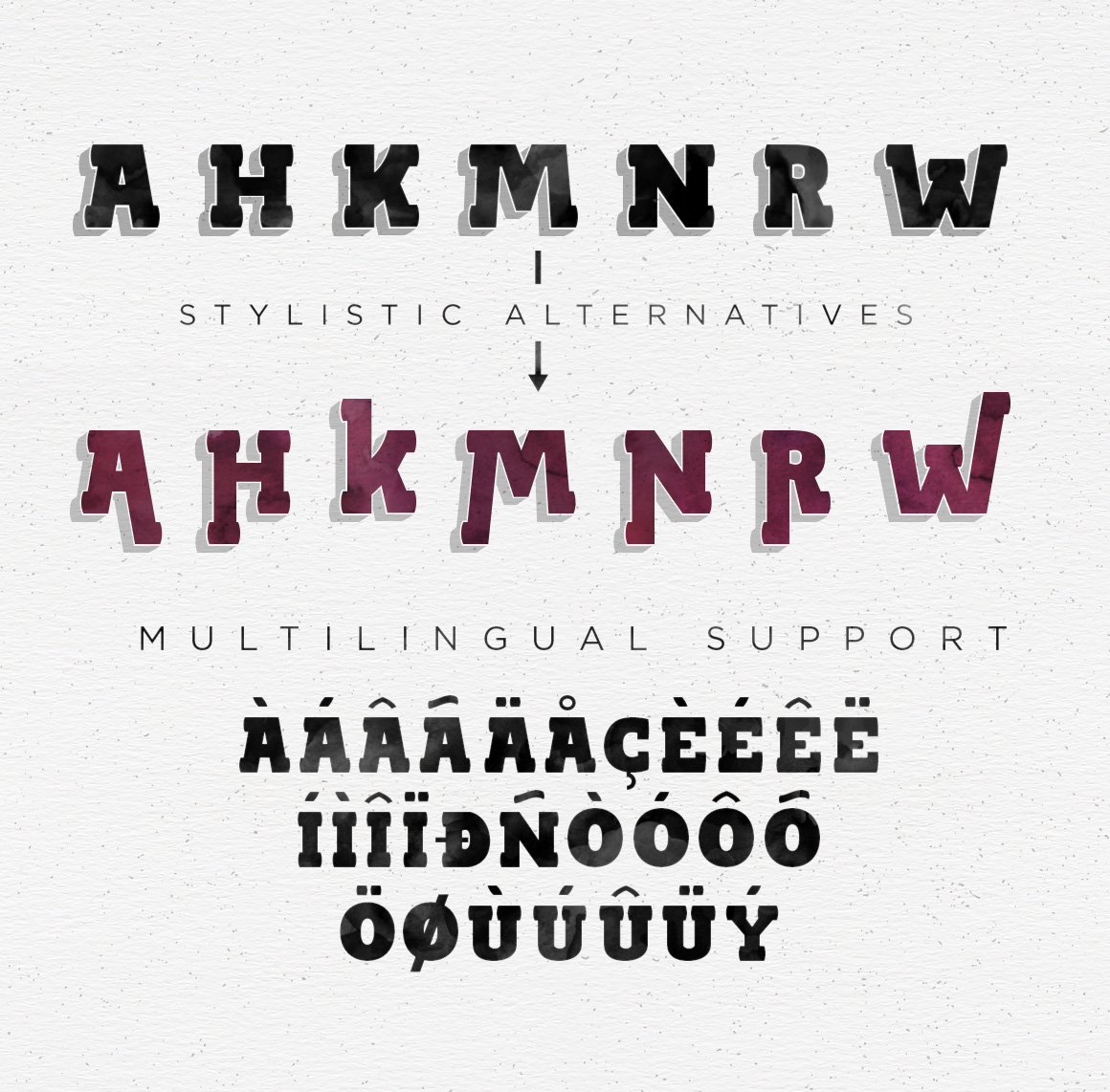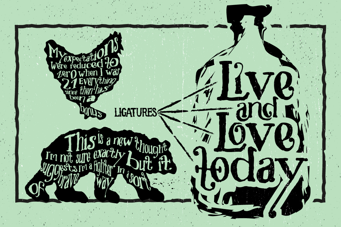 Leathery typeface bundle is handmade vintage typeface with unique character & with 3 different fonts (smallcaps, uppercase and capslock ttf and otf format) with total 402 glyphs.