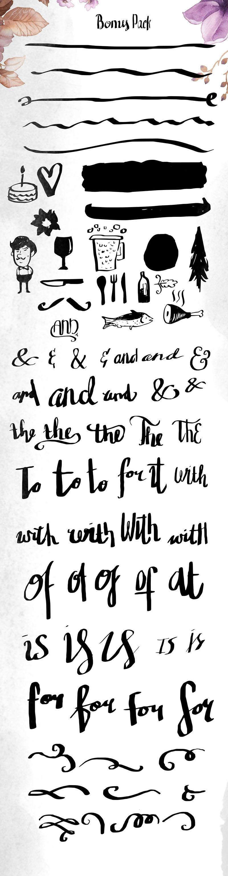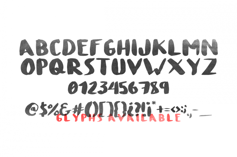 With different glyphs from innocent typeface you can make the your typography powerfull, original & unique. Made from waterbrush with attention to catch the texture. Great fot your new gig, poster, invitation, or anything you want…