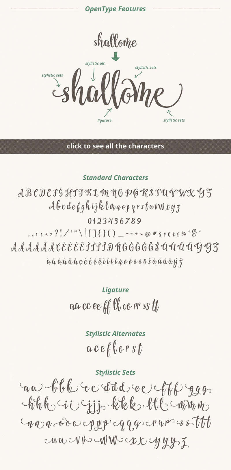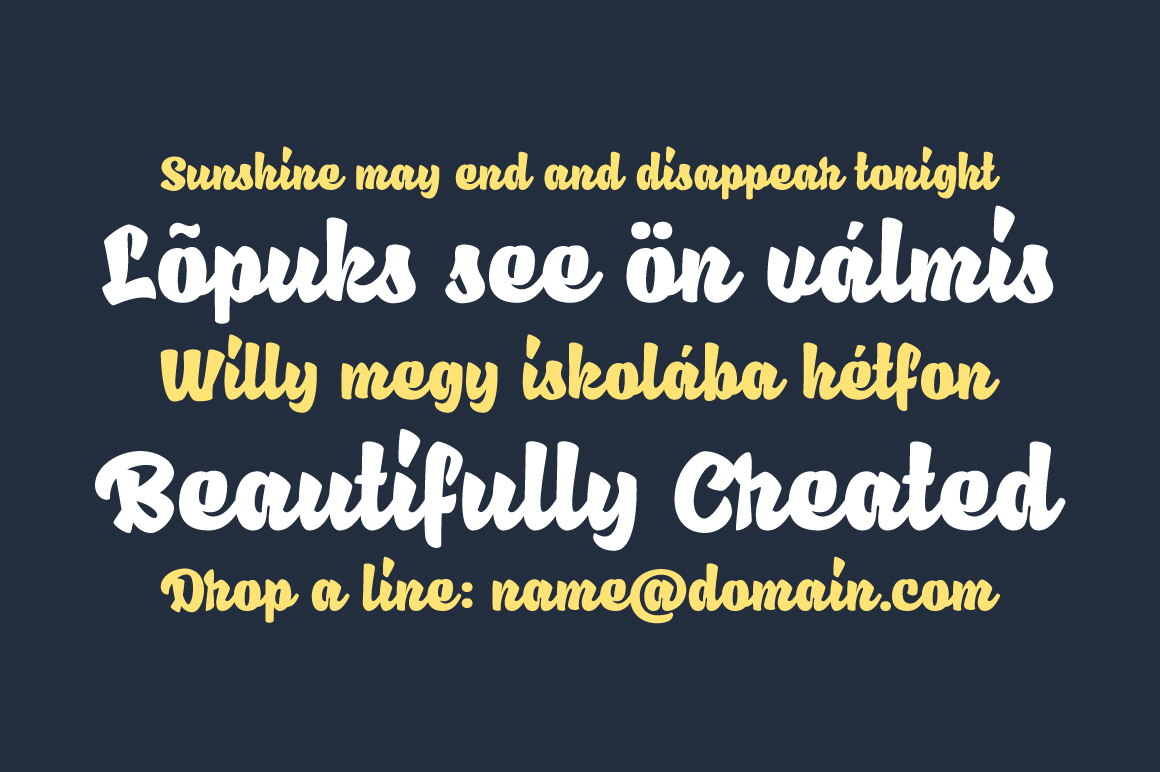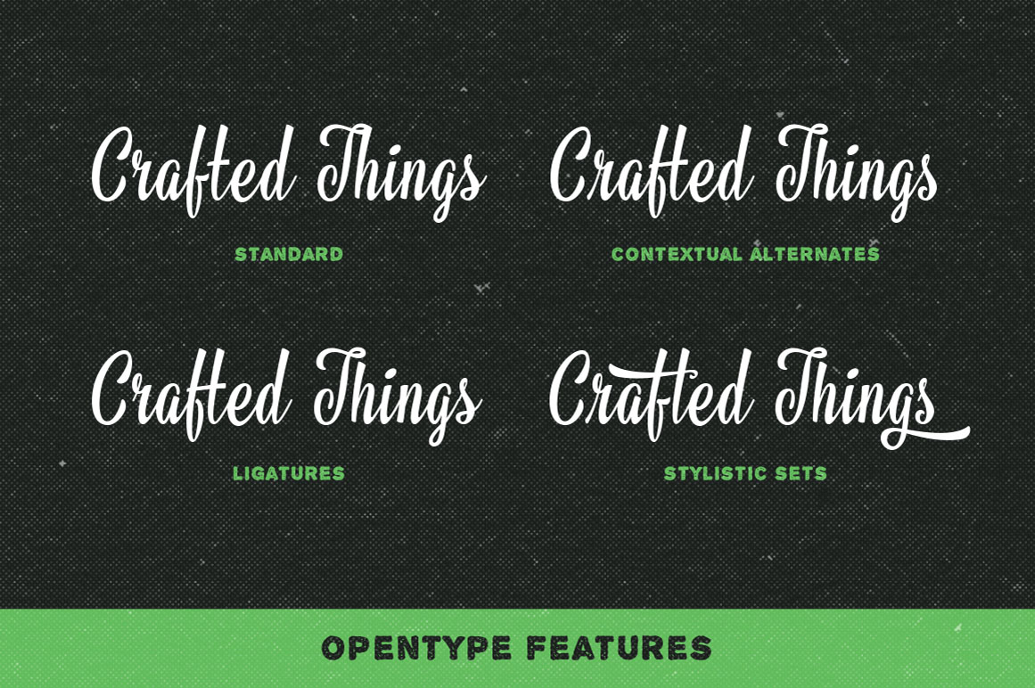 Atlantika is a script font inspired by traditional sign painting and speed brush lettering. It is highly suitable for t-shirt, signage, logo, branding, and packaging. With almost 300 glyphs in total and 122 alternate characters, you can play with Atlantika font to create your own custom lettering design. Just mix and match the alternative characters to create an attractive message. The alternative characters in Atlantika font were divided into several OpenType features such as Contextual Alternates, Stylistic Sets, and Ligature. The OpenType features can be accessed by using OpenType savvy program such as Adobe Illustrator and Adobe InDesign.