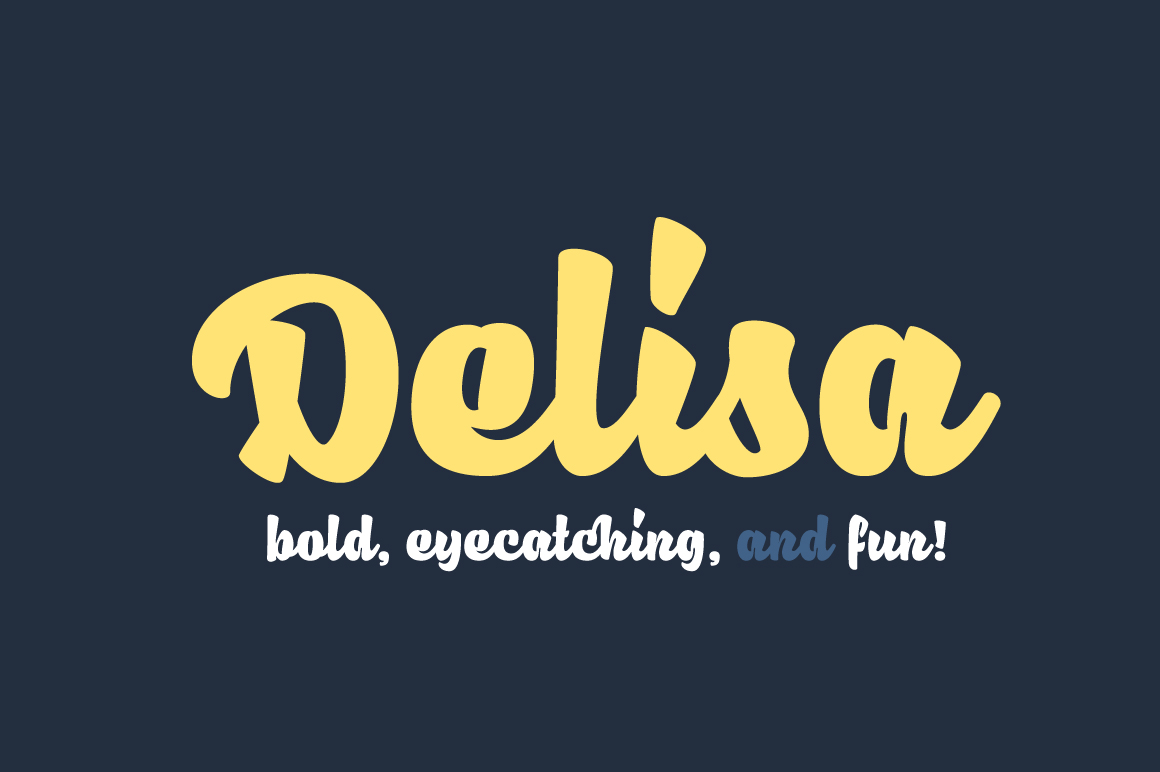 Delisa is bold, modern, and fun typeface to create an attractive message and make eye catching content. It is undoubtedly force your eyes to see it when it be used in the content. Delisa is suitable for various project such as branding, packaging, poster, headline, brochure, t-shirt, etc.