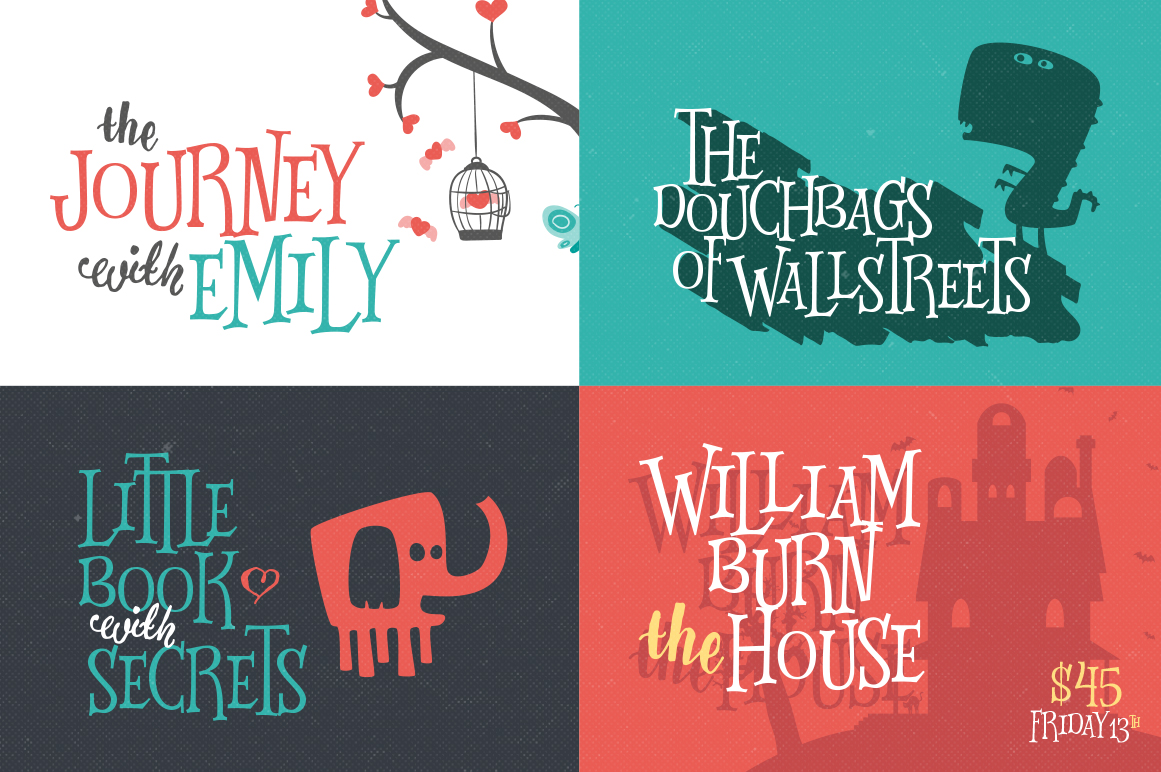 Fonts mega bundles are very popular on Dealjumbo so we have new one for you 😉 This is one of best so far! And it’s lucky 13 😉 As always only with highest quality & top sellers custom font families in one mega bundle! If you are looking to beef up your custom font library, this Jumbo Deal is just for you! With almost 92% off and available for limited time only, you’ll need to grab this new 5in1 mega bundle while you can.