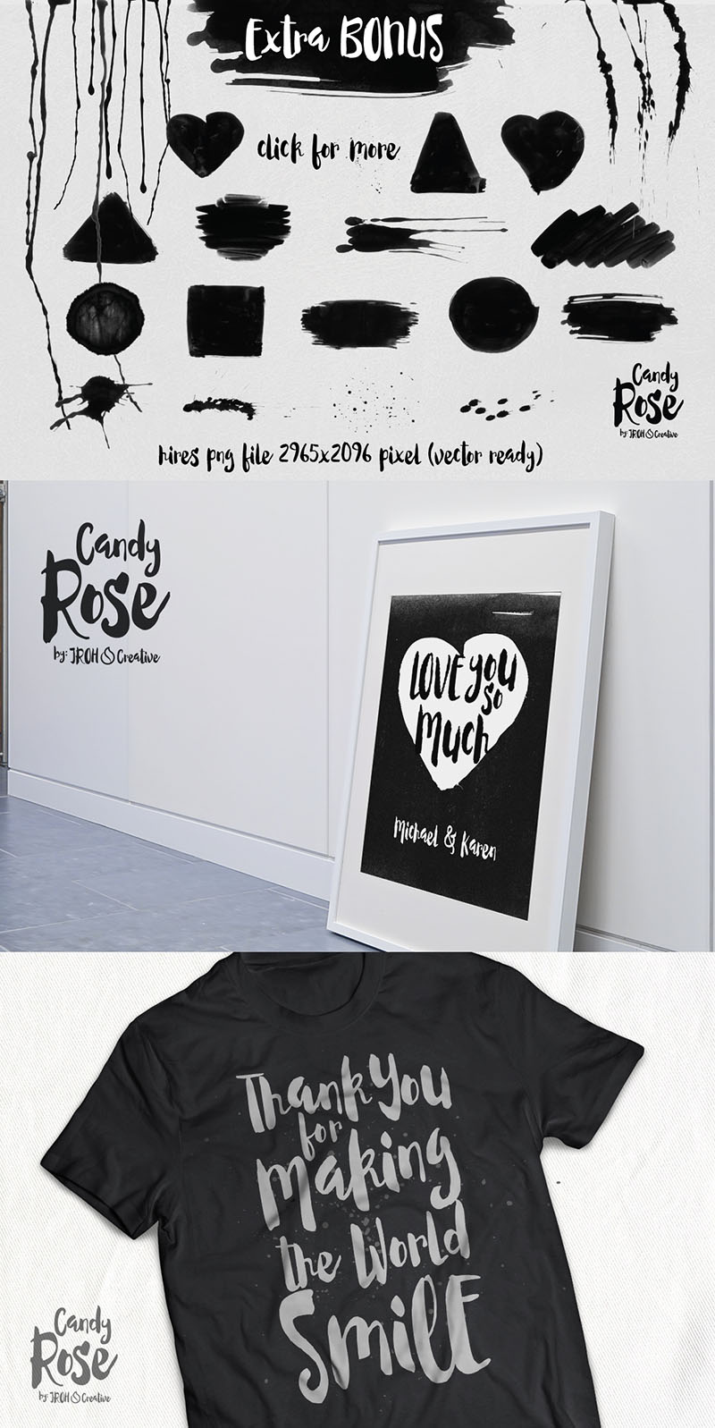 CandyRose is beautiful irregular modern script. Imperfect style, spontaneous brush and easy flow give the natural look to this cool font. Great for your book covers, film covers, apparel, cards, logos, poster, souvenirs, T-Shirt, etc.