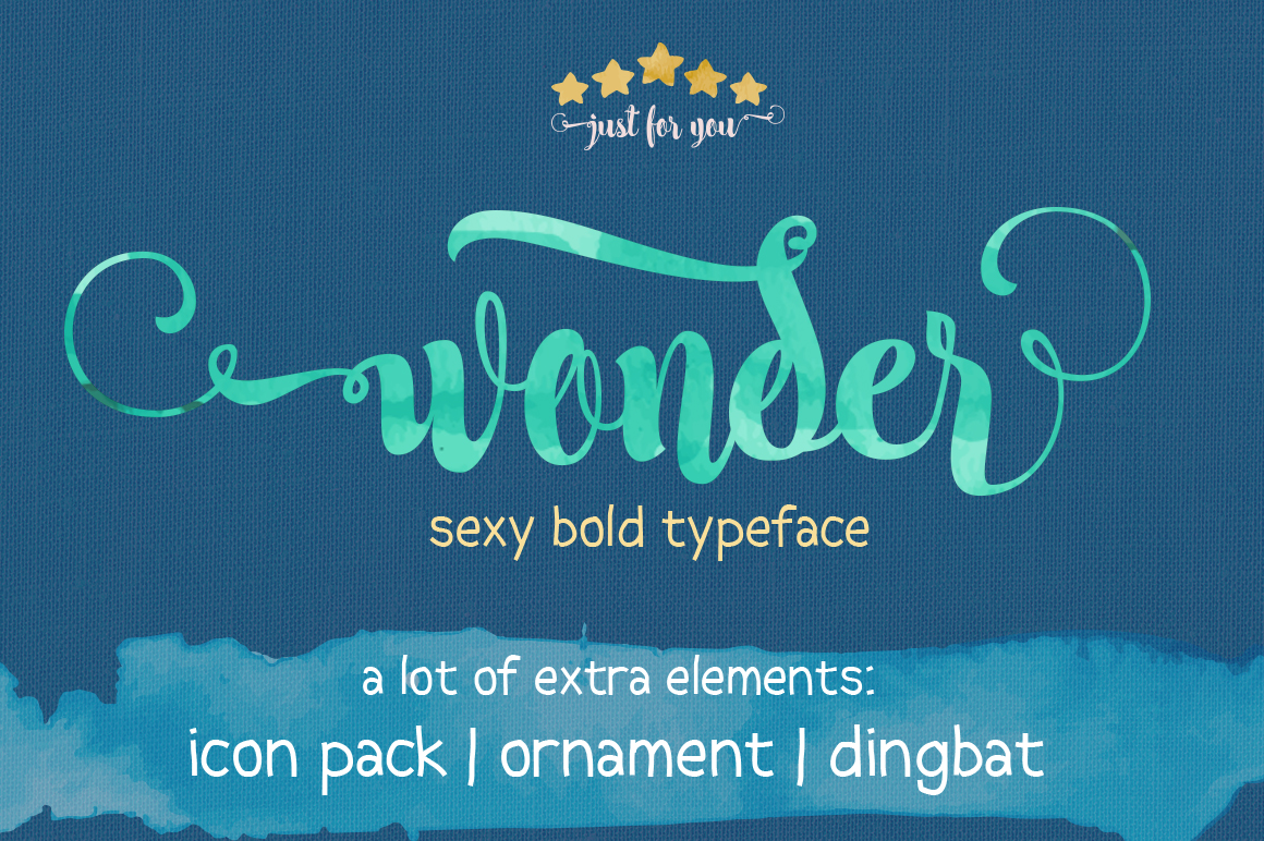 Wonder is another modern calligraphy typeface. Mix of classic modern calligraphy with a sexy style 😉 Wonder come complete over 400 glyphs and some extras: icon pack, ornaments and dingbats.