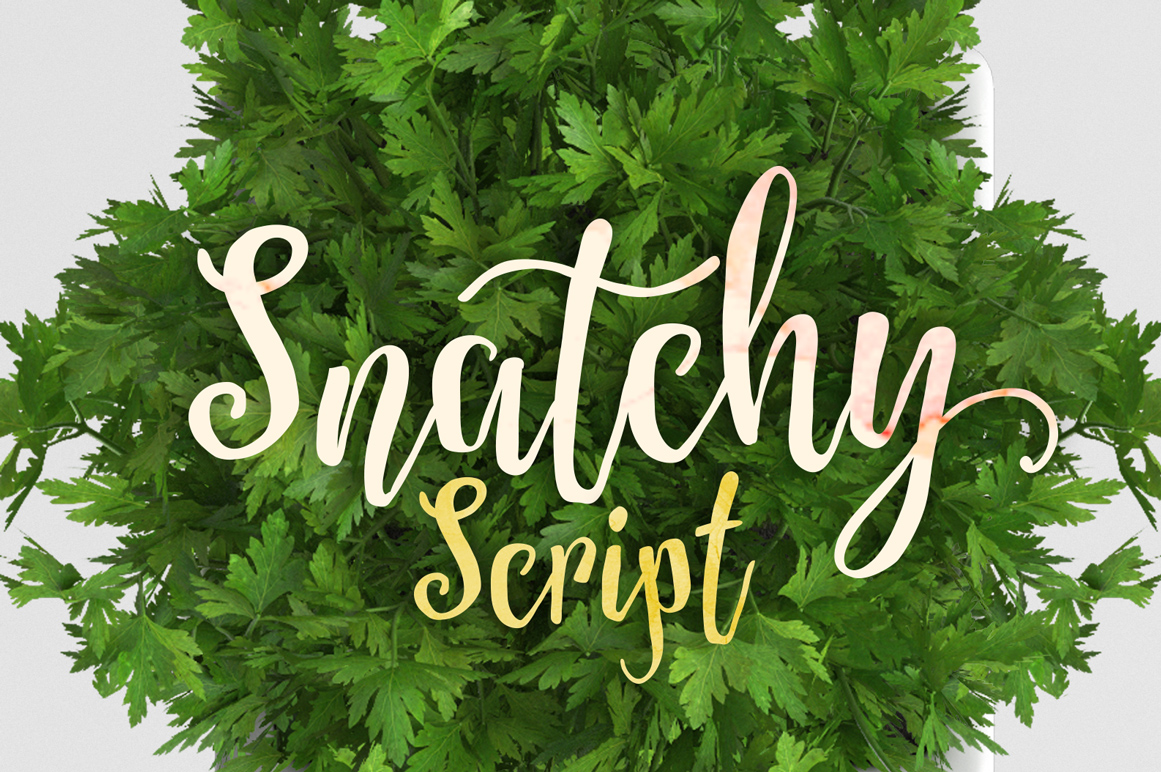 Snatchy is a fun hand made script font with a strong natural feel. With dynamic shape and irregular baseline, Snatchy could easily attract the attention to your message. It makes the design look personal and natural. Snatchy suitable for vintage design as well as modern design, it can be used in your watercolour design project, greeting card, poster, t-shirt design, branding, etc. Snatchy contains of full set of standard characters, eastern diacritic symbols, and 85 alternative characters as OpenType features to play with. The OpenType features can be accessed by using OpenType savvy program such as Adobe Illustrator and Adobe InDesign.