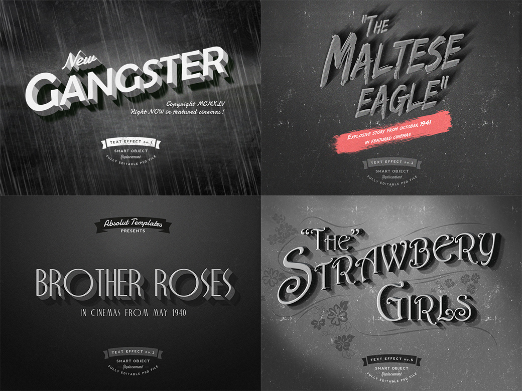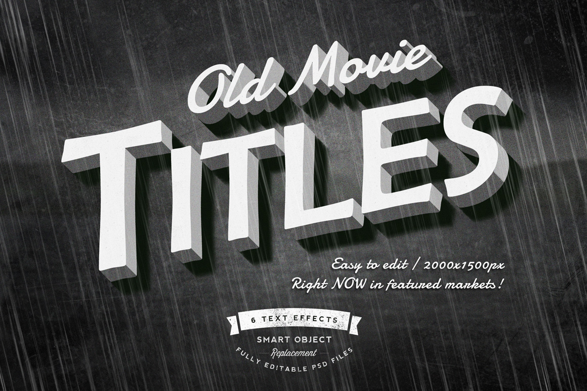 This pack contains 6 fully editable PSD files, layered in high resolution. Old Movie Titles effects include: