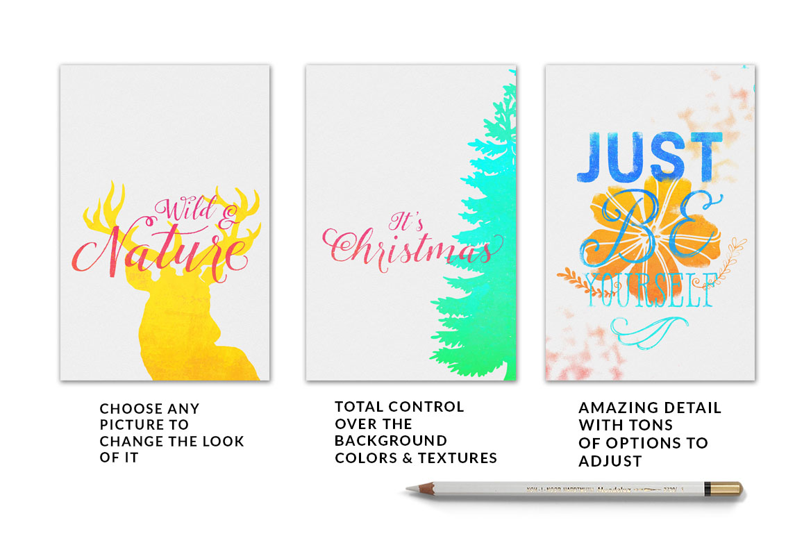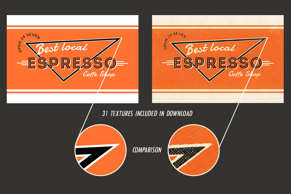 • 27 Different textures (Ink – Halftone – Dust – Lines – Dots – Wood)