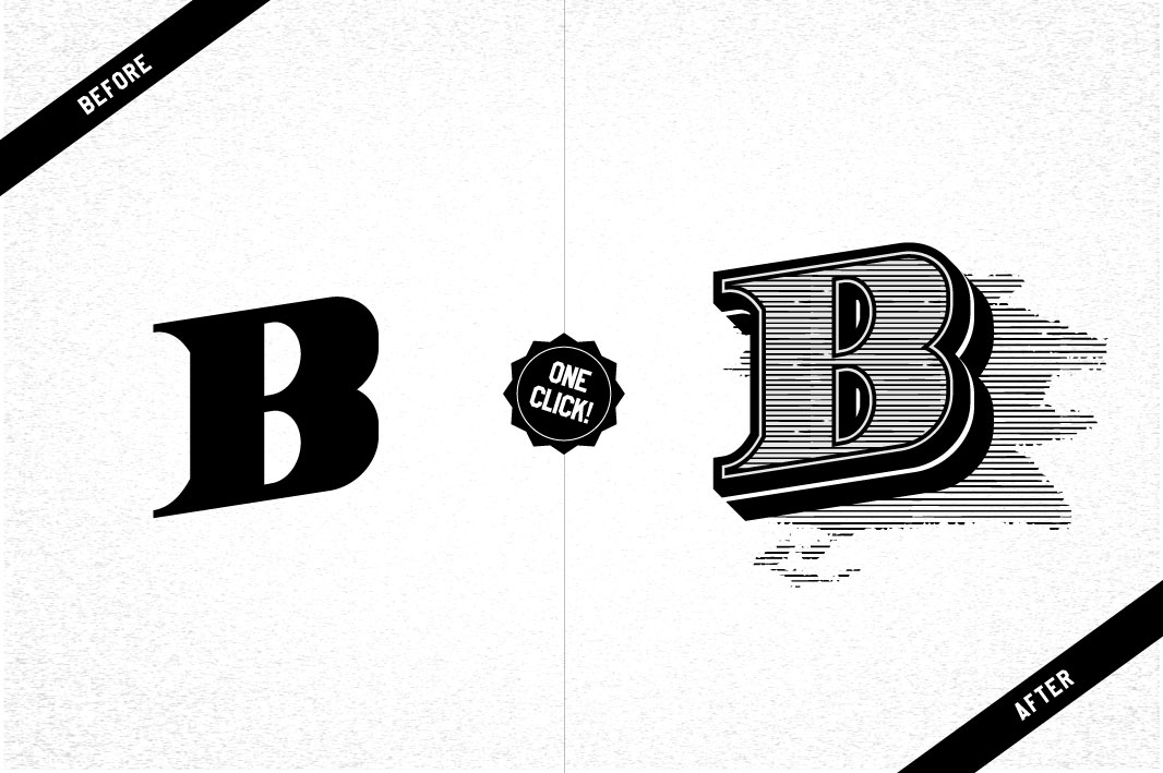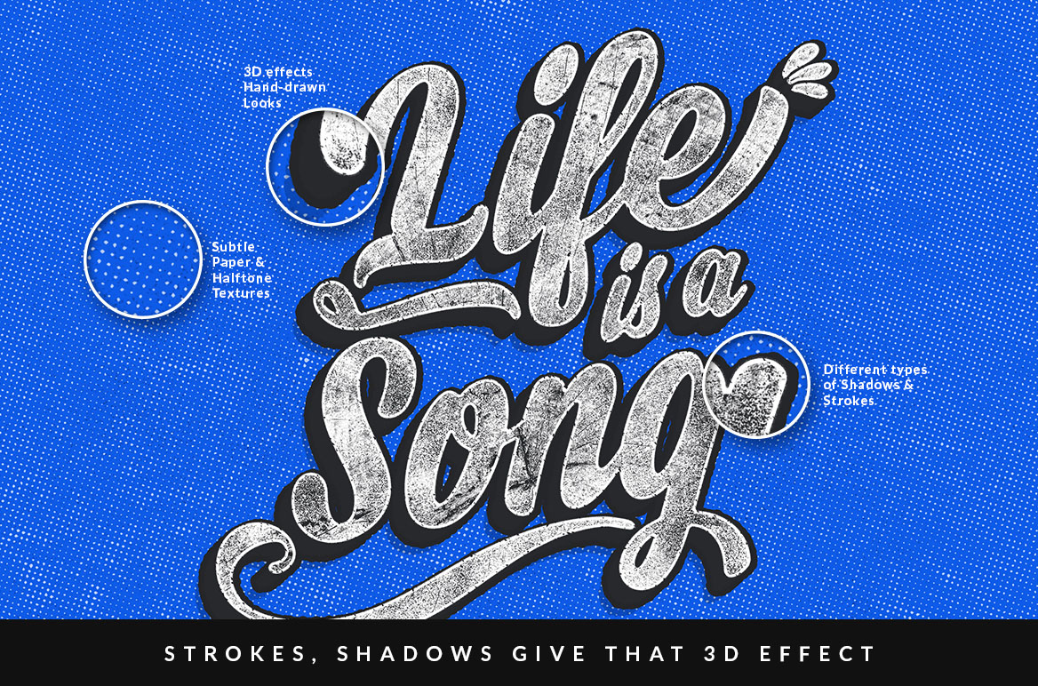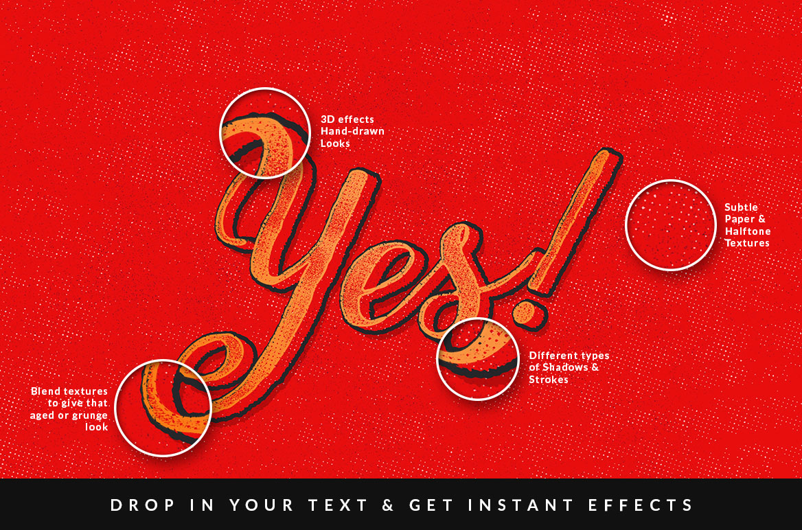 5in1 Mega Bundle v.17: Best Add-Ons & Effects contains lot of vintage text effects, photography Photoshop & Lightroom actions, brushes, styles and mockup templates from 5 talented designers.