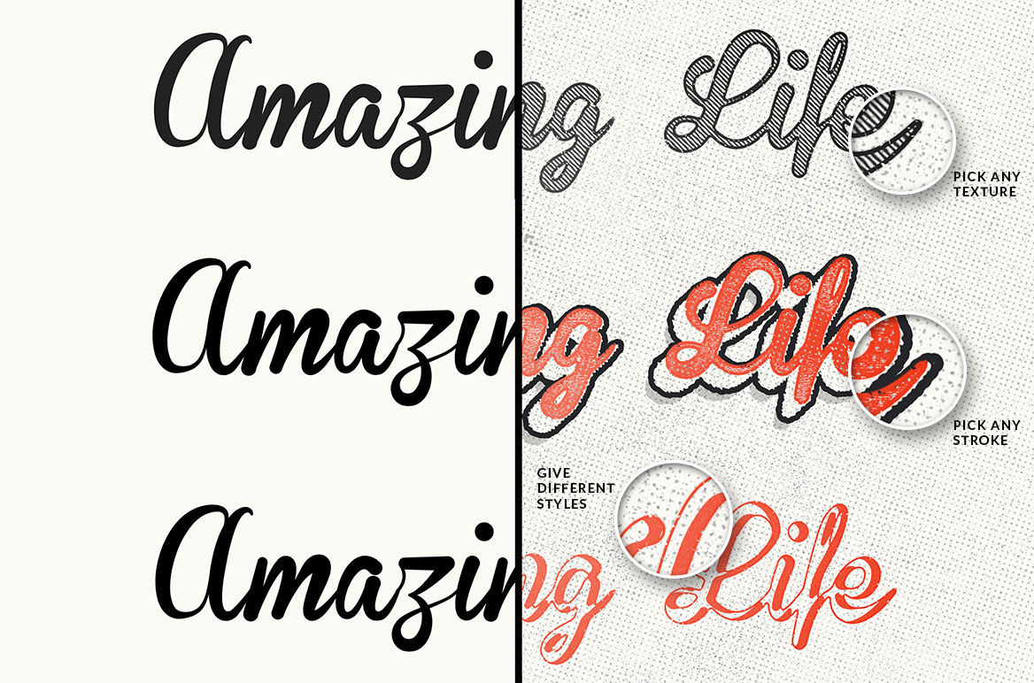 This is an easy to use kit of everything you’d ever need to get great looking Styles for your text, really fast and easy. Here’s some of the Great options that come packed in this kit: