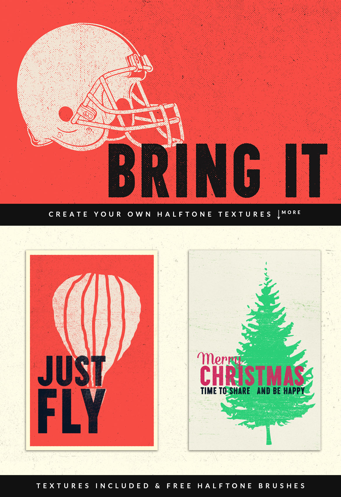 Stop looking around all the internet to find Halftone textures and start creating your own and having total control of how your textures look like. BONUS brushes supplied to make your own halftone textures. Requirements: Photoshop CS3 or above. Will NOT work in PS Elements or Coral Draw.
