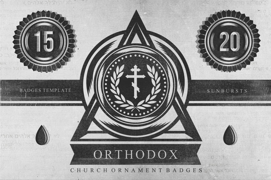 Collection of vector objects, badges, insignia and icons / symbols inspired from “tetragrammaton” and ancient orthodox church ornaments / iconography. Features: 15 Logo / badges template, 20 sunbursts, Each objects are separated in layers, Easy to remove or add each element, 100% Vector, AI + EPS + PDF.