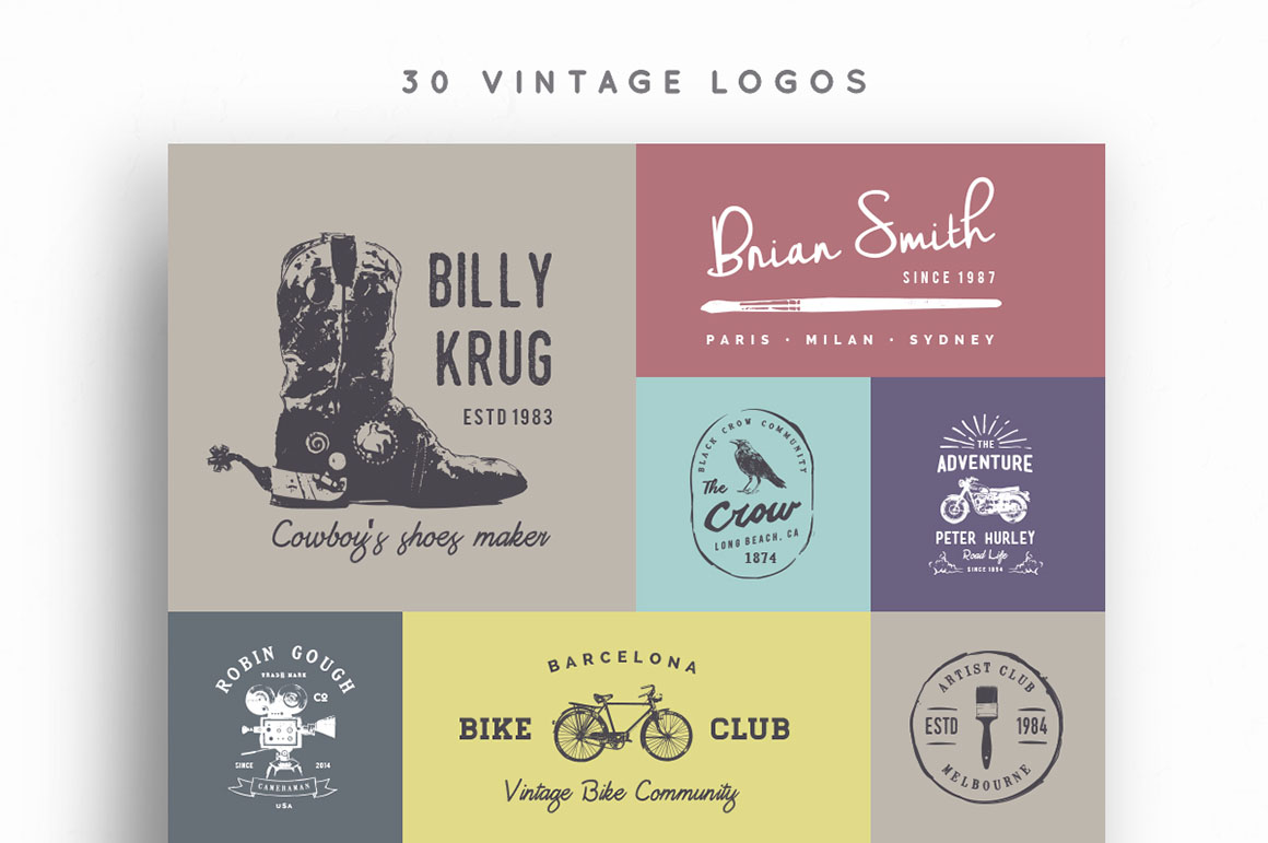 Get 30 Vintage Logos with great price. you can easily edit color, text, and font type. Crafted with details using Adobe Illustrator (vector software), you can resize it into any size that you want, you’ll never worries with file resolution.