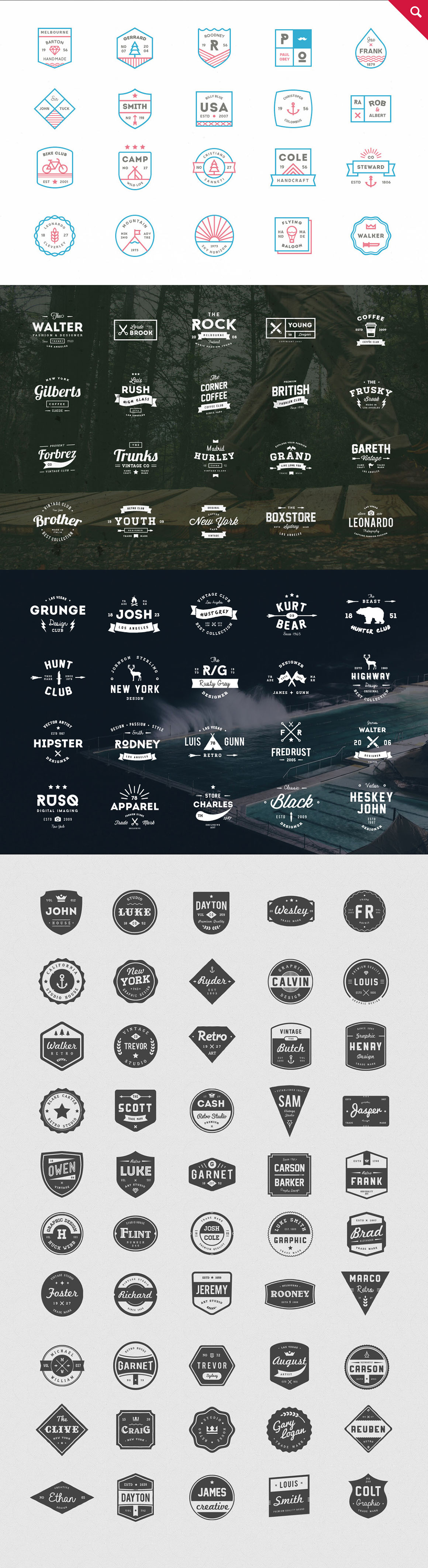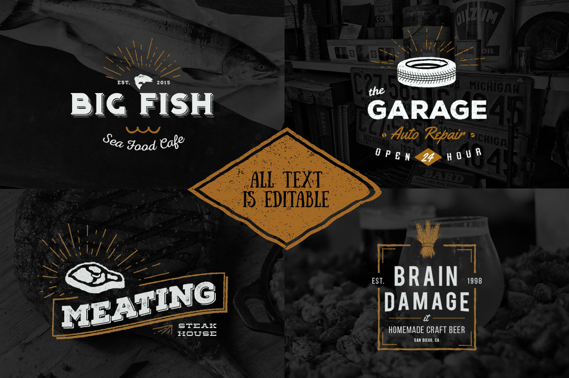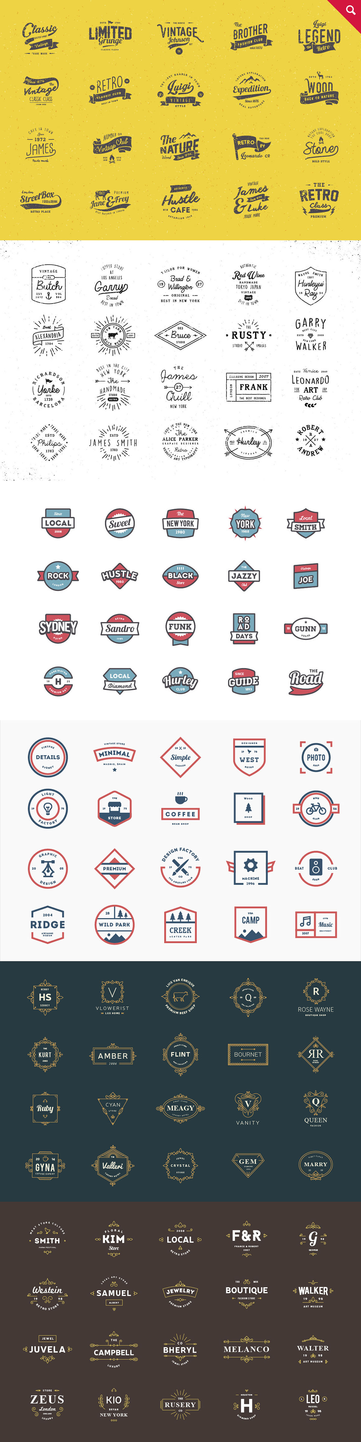 BIG BUNDLE!! The huge bundle of Vintage Logotype and Insignia is here!! All logos are editable, 100% free fonts and you can resized or scaled down to any size, without loss of quality. You can easily edit in Illustrator or Photoshop. PRODUCT DESCRIPTION: Vector format, Fully editable, Only free fonts used, Help file with download link for fonts, Organized layers, Available in AI + EPS + PSD, All are vector format and resizable.