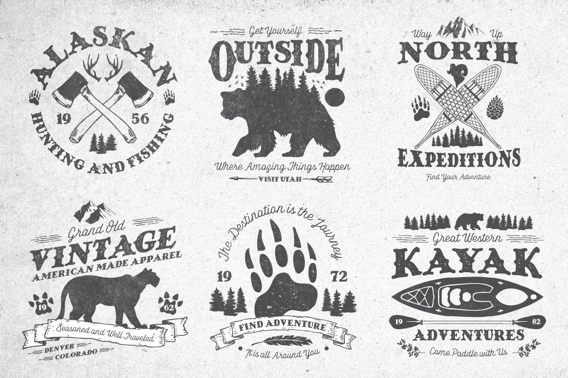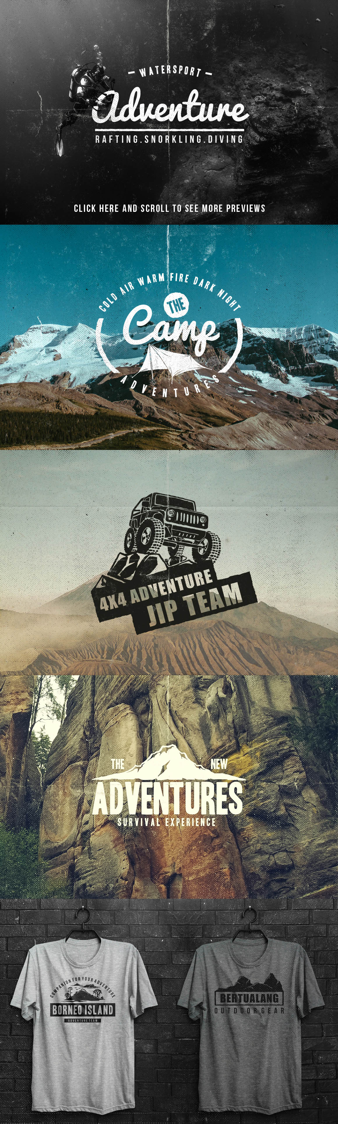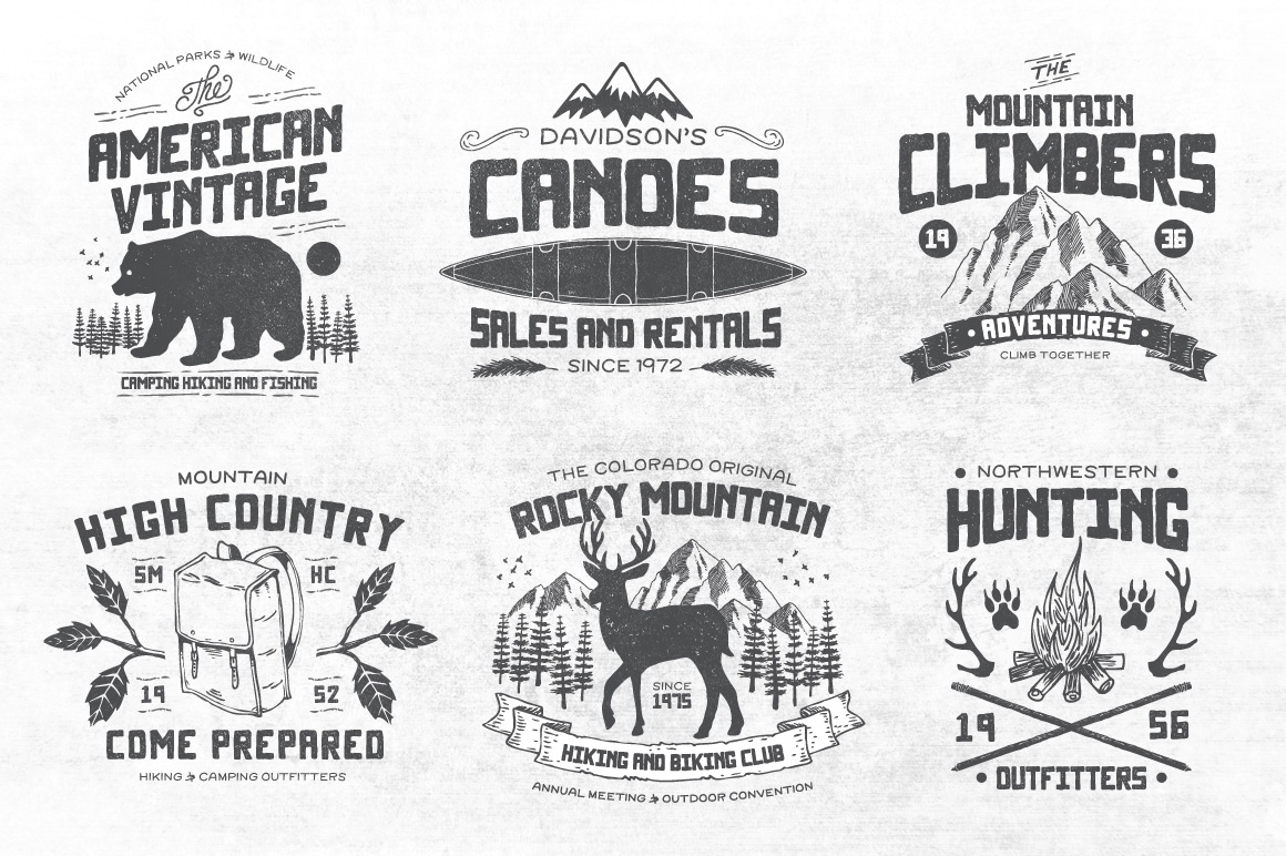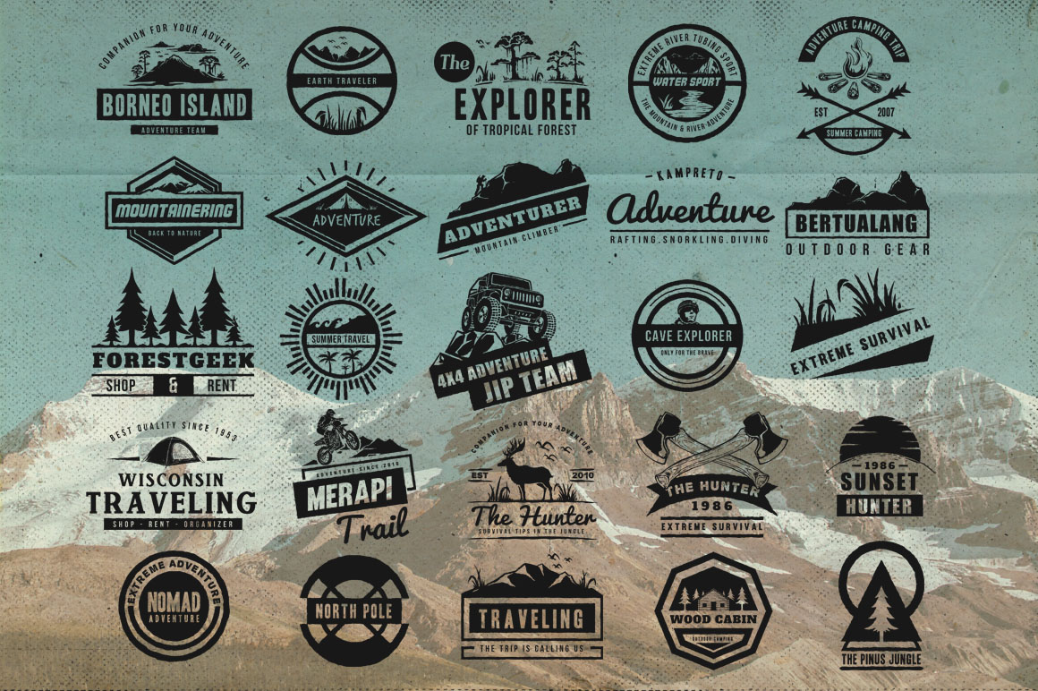 This product is 50 logo templates inspired from the outdoor activities and traveling. Each logo is handdrawn and carefully handcrafted to get the vintage, unique and handmade feel! What inside of this product? 50 Logo templates in vector format, Fully editable, Only free fonts used, Help file with download link for fonts, Organized layer, Available in AI + EPS + PSD. Bonus: 28 Separate vector objects and elements.