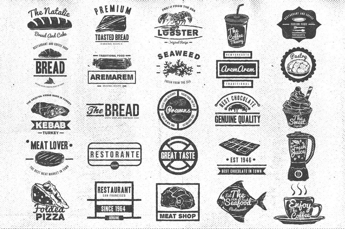 This product is 50 logos templates with food / restaurant related theme. Tired with bundle logos templates that actually have the same shape over and over? Then you should try this product! Each logo is carefully handdrawn to get the real vintage touch. All are handdrawn..all are editable, all are resizable and of course already textured, so you don’t need extra work adding some textures on it! You will find various food logo and beverage in this product : Chocolate, Coffee, Lemon, Juice, Bread and Bakery, Cup Cake, Pizza..even asia traditional culinary are available here! This is a complete food logo bundle with wide range of various culinary. So what inside of this product? 50 Logo templates in vector format, Fully editable, Only free fonts used, Help file with download link for fonts, Organized layers, Available in AI + EPS + PSD, All are vector format and resizable, All are already textured so you don’t need extra work adding some textures, 31 separate vector objects.