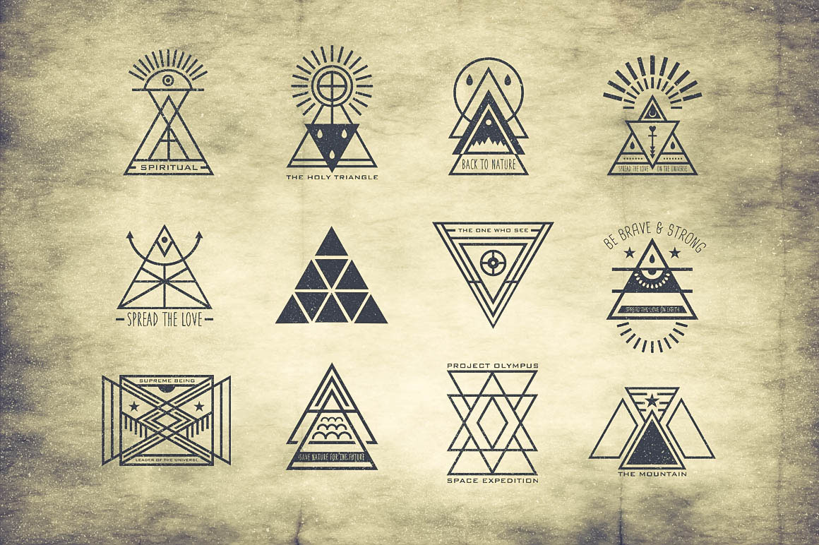 The triangle has a New Age symbolism that perfectly describes belief or the way of life of hipster. Get these 12 vector badges, based on the hipster popular triangle. make your own text then upload on social media, print on shirt or mug and make something cool with these badges! So what inside the ZIP file? 12 vector badges inspired from hipster triangle, Editable text or colors, Organized layers, Only free fonts used ( Download link available inside the zip file ), 100% vector, FILES : AI + EPS + PSD.
