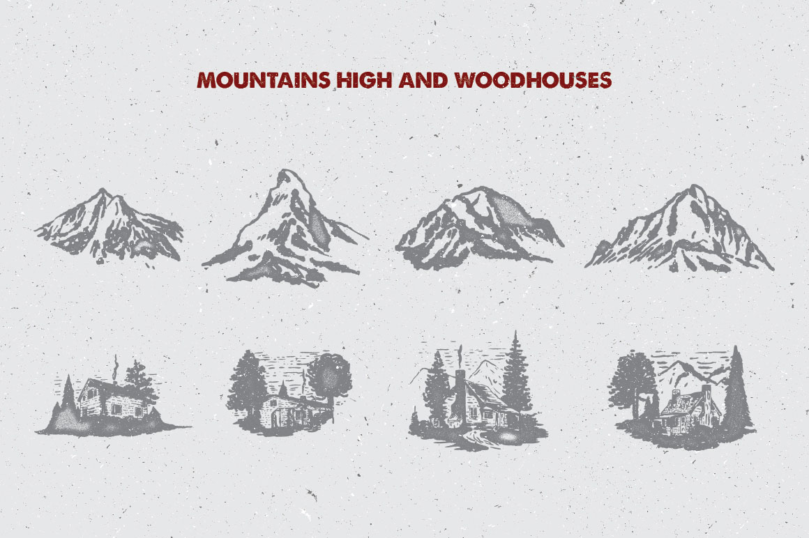 Following the river to see where it leads, climbing to see what’s over the next peak… This is a collection of fonts and vector graphics inspired by the northwestern region of America. It just doesn’t get any better. Once I sat down and started sketching the set, it became so big that I’m splitting it into 3 volumes. This second set features a fat, hand drawn serif style font, over 50 vector graphics, 6 vintage badges, textures, brushes and more! Here’s what you get: 2 Hand drawn fonts, 50+ Hand drawn vector graphics, 6 Vintage style vector badges, 6 Custom brushes for Adobe Illustrator, 3 JPG Textures used in the preview.