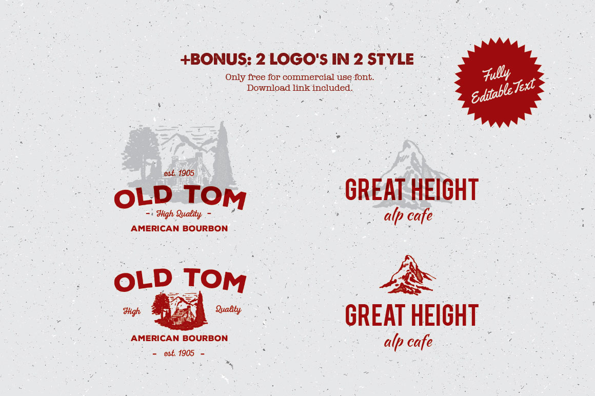 It’s really good for vintage logo’s, prints or cards, web design, posters or anyway what you want to be “retro”. Each letter have a alternate glyph. Also, some glyphs a different in both characters. You can combine the characters for more interesting vintage effect.