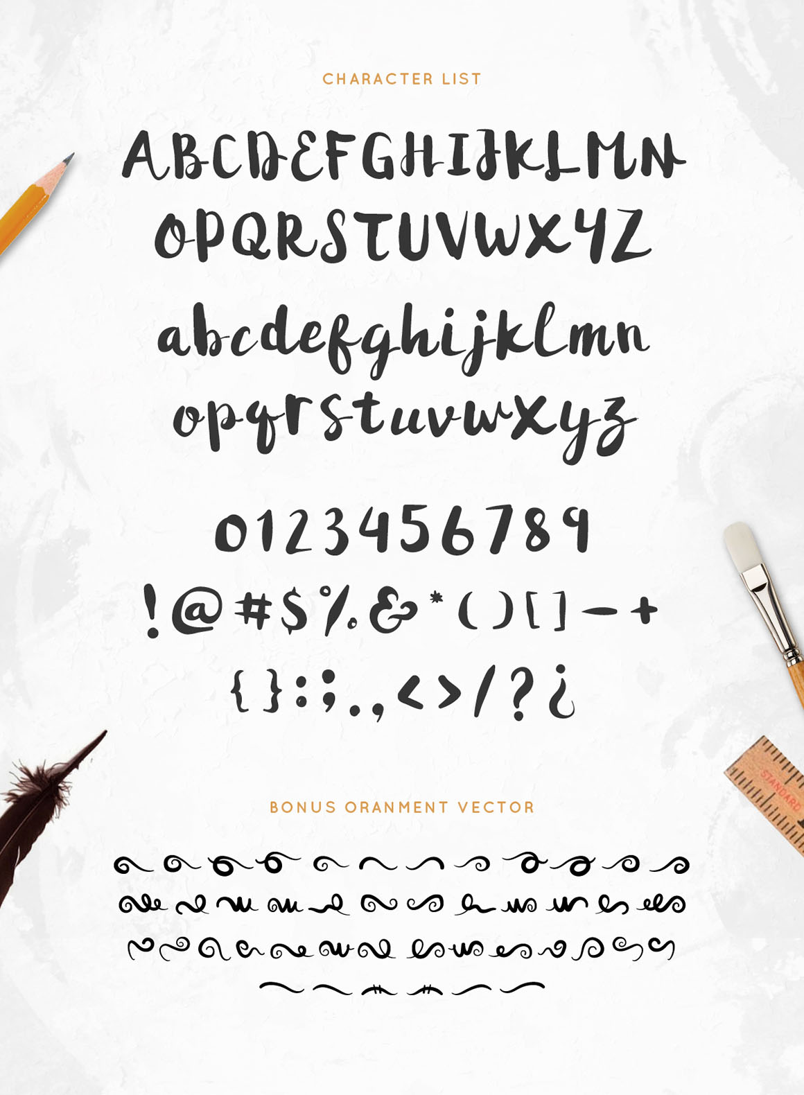 After two sleepless nights, I am pleased to present to you my second experience in creating fonts. Created by hand using ink pen for calligraphy. Cute font for creating graphics and design in vintage style. Well suited for creating logos, t-shirts, business cards or any printed stuff. And also will be good for use in web.