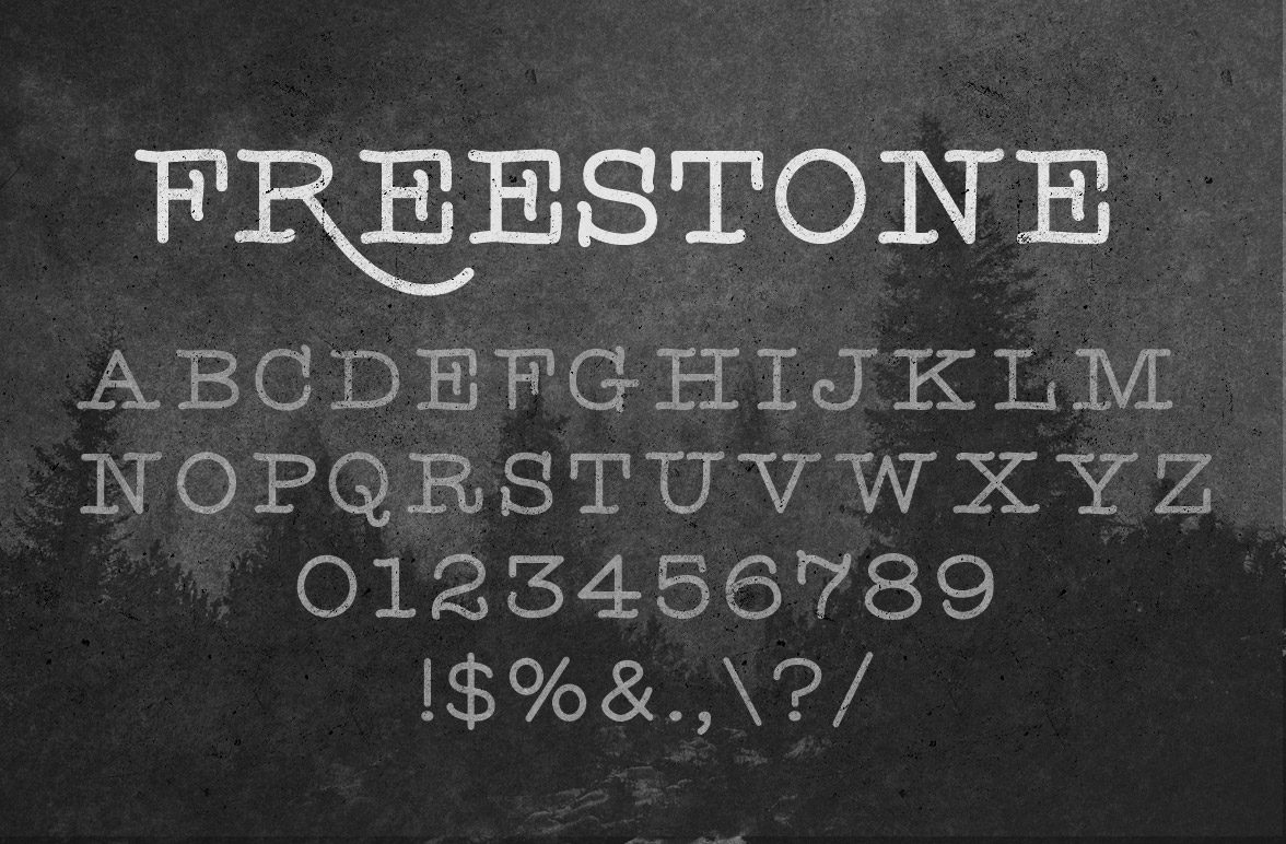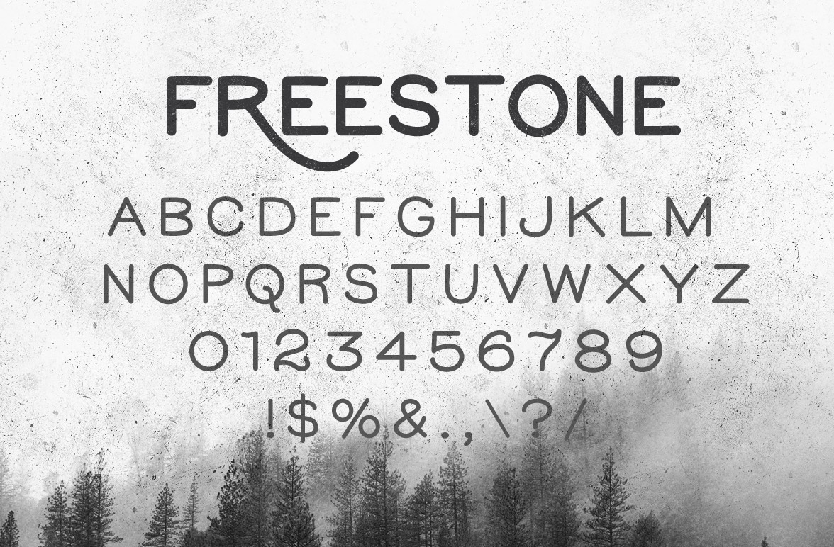 Freestone is a simple and clean hand drawn font. It is inspired by the hand lettering movement, the outdoors, and vintage style design. The download includes a serif and sans serif version, each with three weights. There are alternate capital letters for K,L,R. The font is a perfect match for badges, logos, stamps and posters.