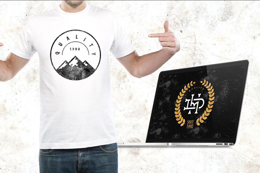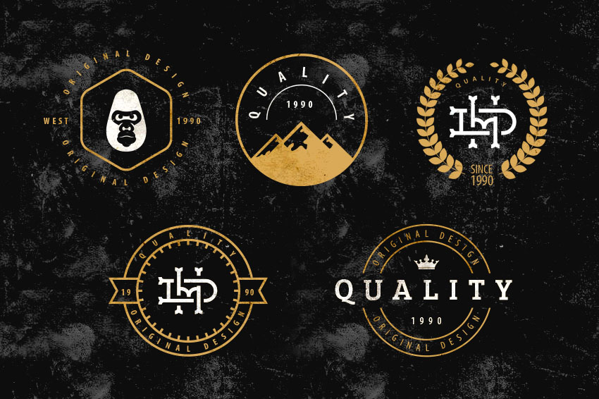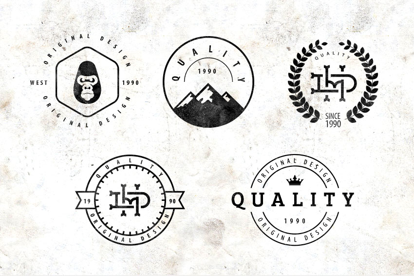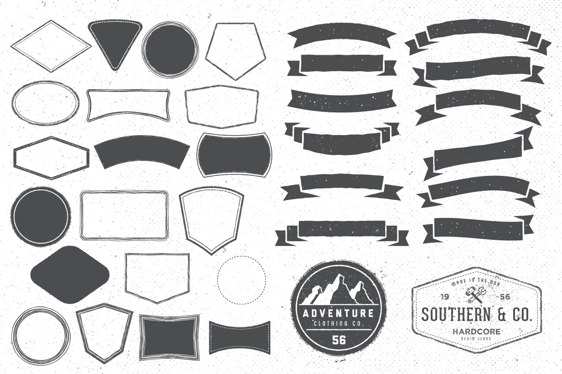 5in1 Mega Bundle v.18: Branding Kit contains lot of retro/vintage/grunge style logo & badge templates, custom fonts and vector shapes from 5 talented designers.