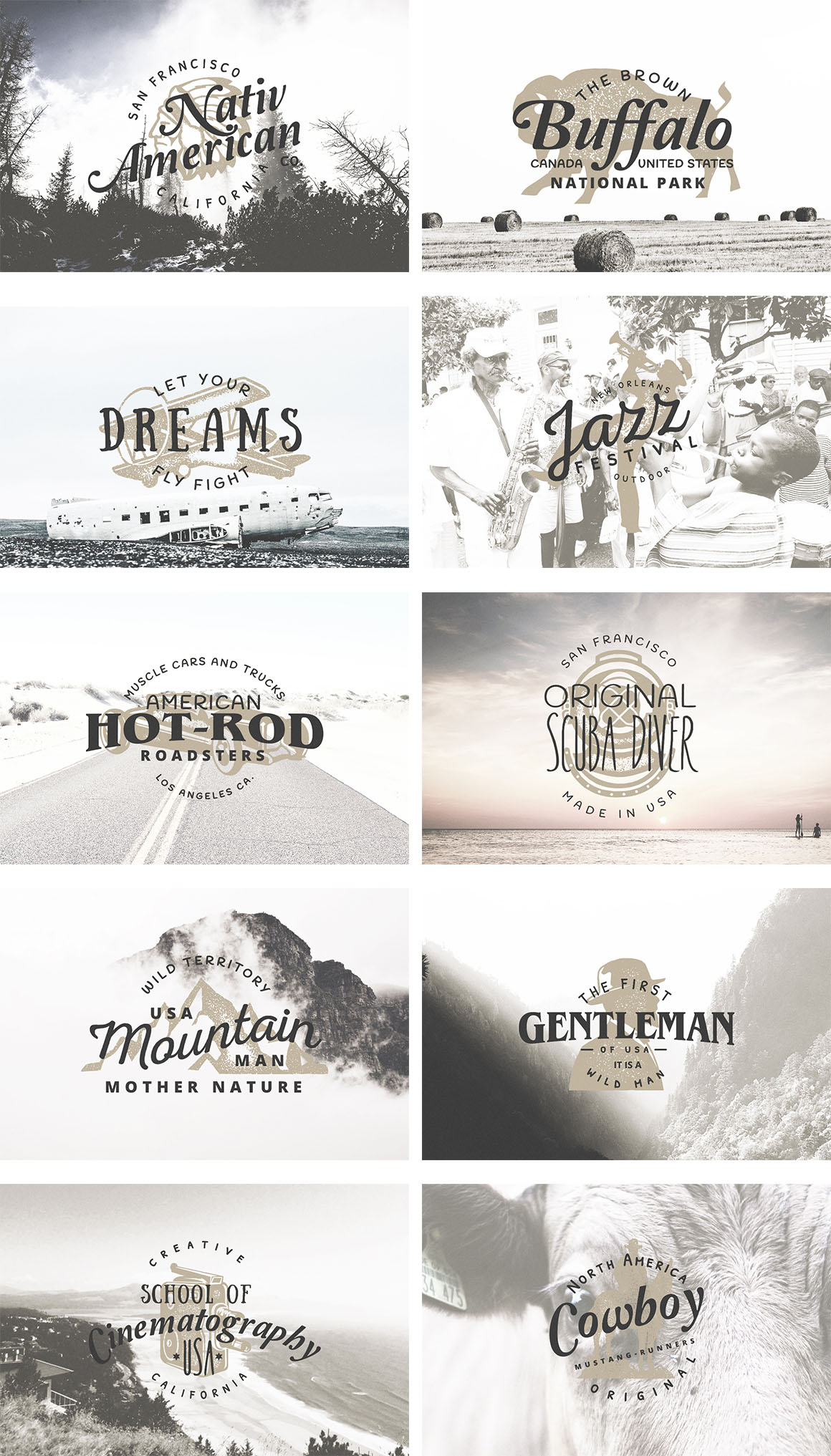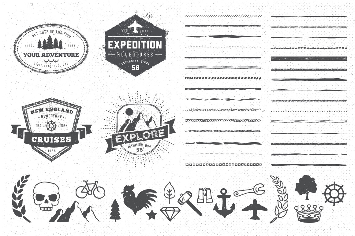 - lot of retro/vintage/grunge style logo & badge templates, custom fonts and vector shapes
