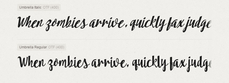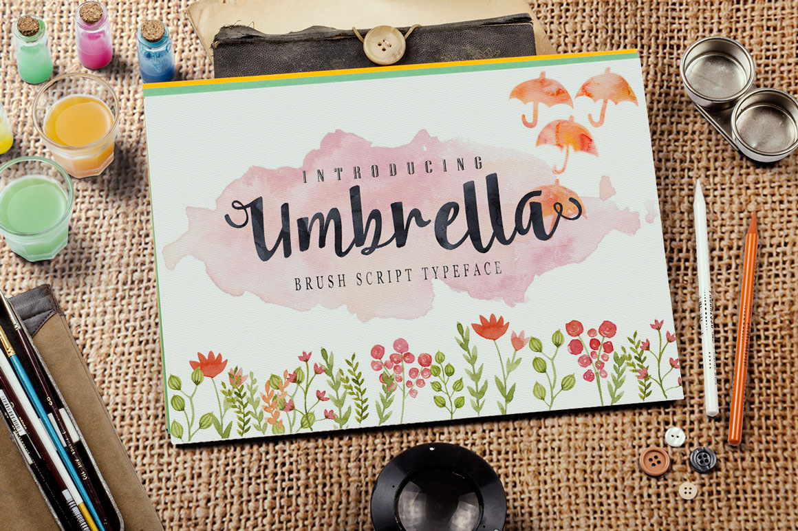 Umbrella is a brush script that is beautiful and unique, it is a model of modern calligraphy typefaces, in combination with a calligraphy brush writing style. Can be used for various purposes.such as headings, signature, logos, wedding invitation, t-shirt, letterhead, signage, lable, news, posters, badges etc. To enable the OpenType Stylistic alternates, you need a program that supports OpenType features such as Adobe Illustrator CS, Adobe Indesign & CorelDraw X6-X7.