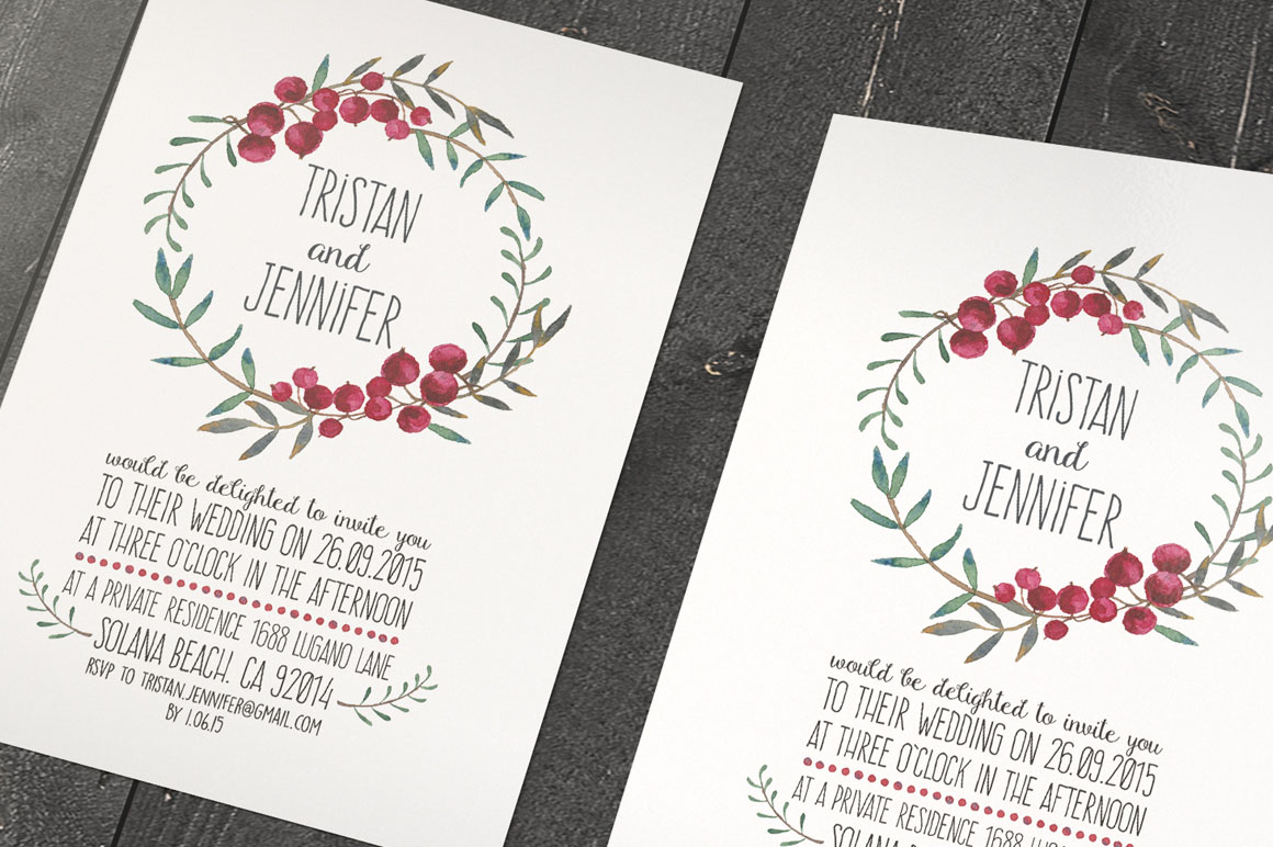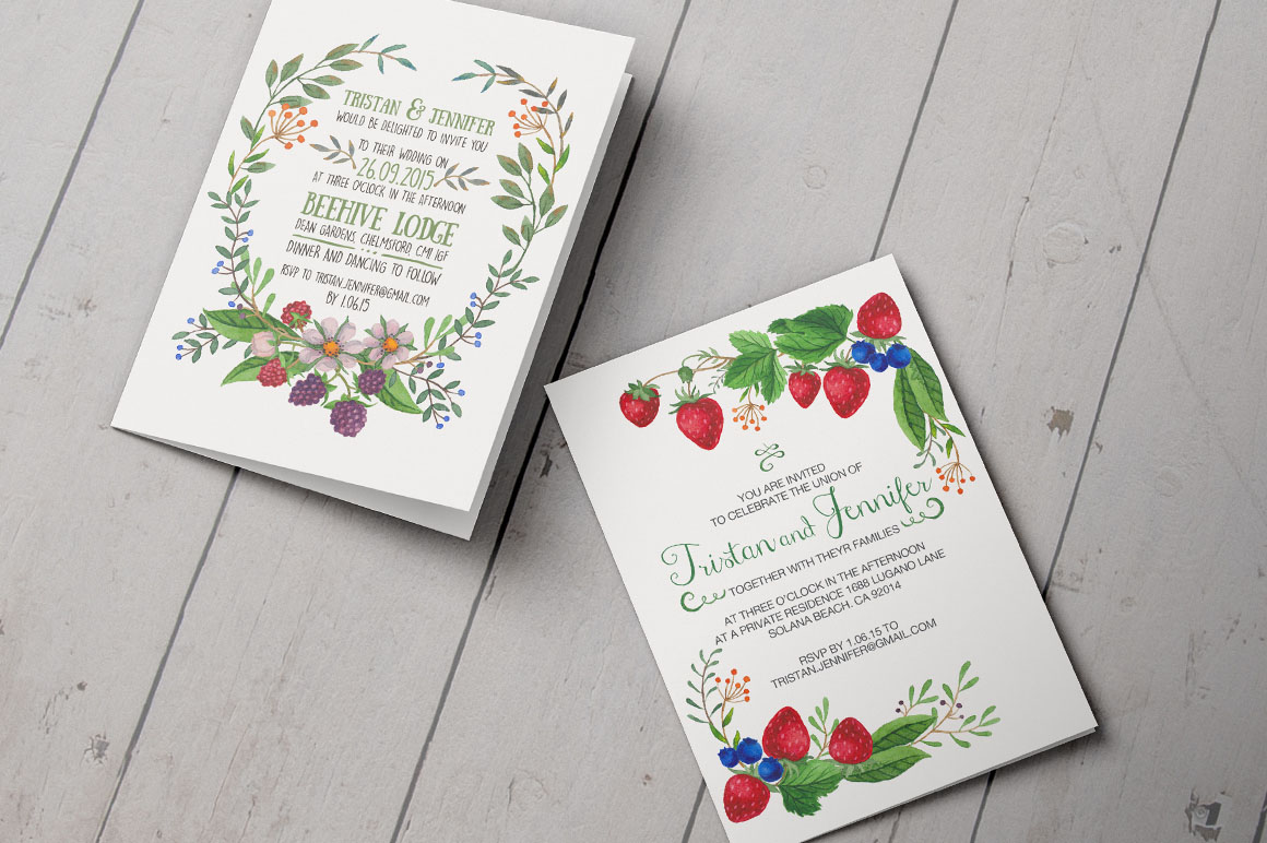 All elements in Watercolour Berries DIY Pack are painted with real watercolours to bring you a creative statement of mind and do your best in creating watercolour designs as wedding invitations, blog decorations, logos and branding identities and other awesome designs. The elements are included in PSD files that works in Photoshop CS5, CS6 and CC. What’s Included: 101 Watercolour Elements around 500x1200px, 8 Ready Bouquets around 1500x800px, 4 Round Wreaths around 1500x1170px, 4 Wedding Templates size: 15x20cm, Help File with links for used fonts.