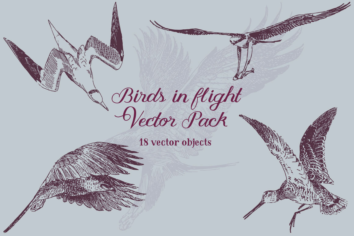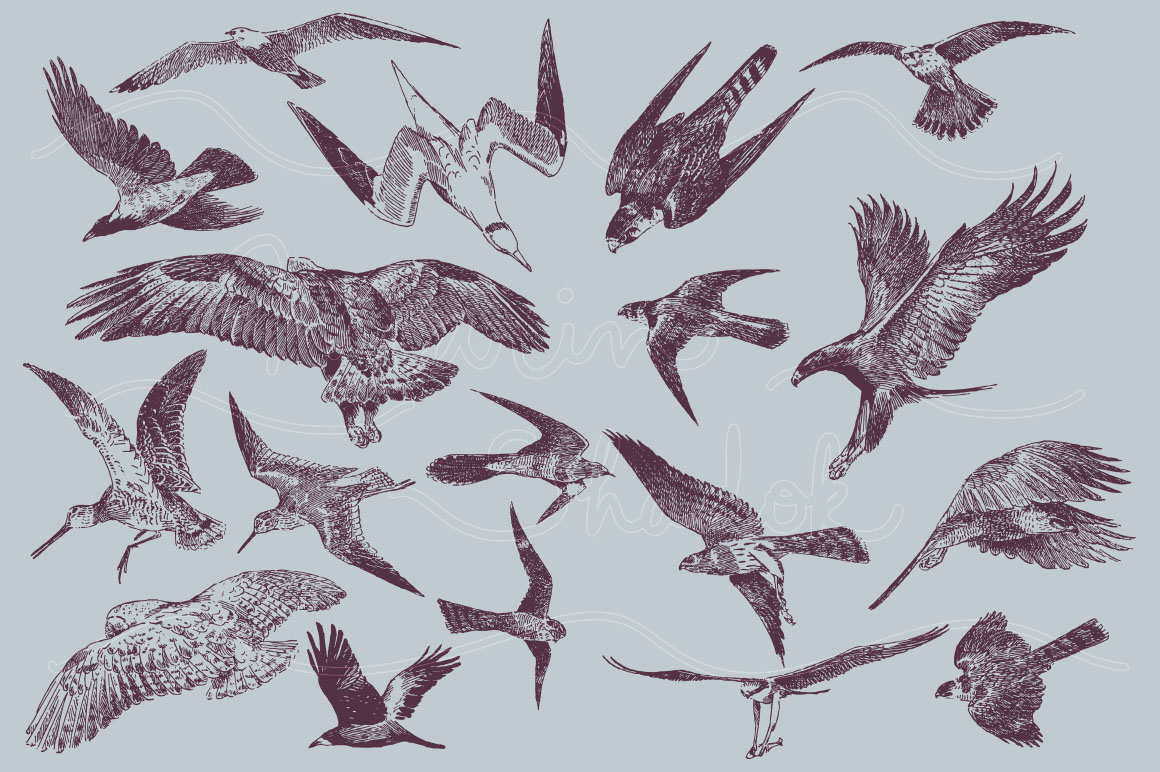 D11. Birds in flight Vector Pack by Marin Shadok