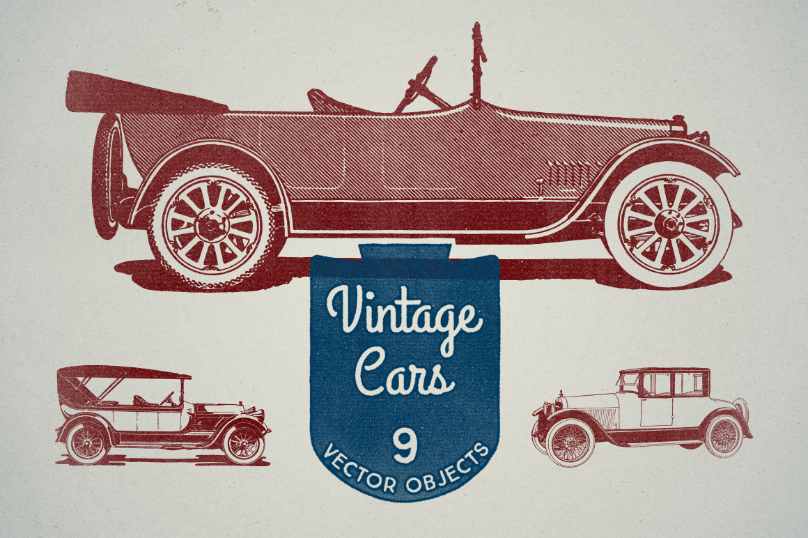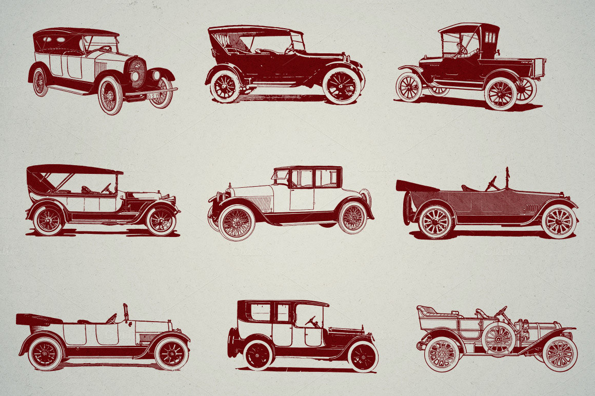 D7. 9 Vintage Cars Vectors by Marin Shadok