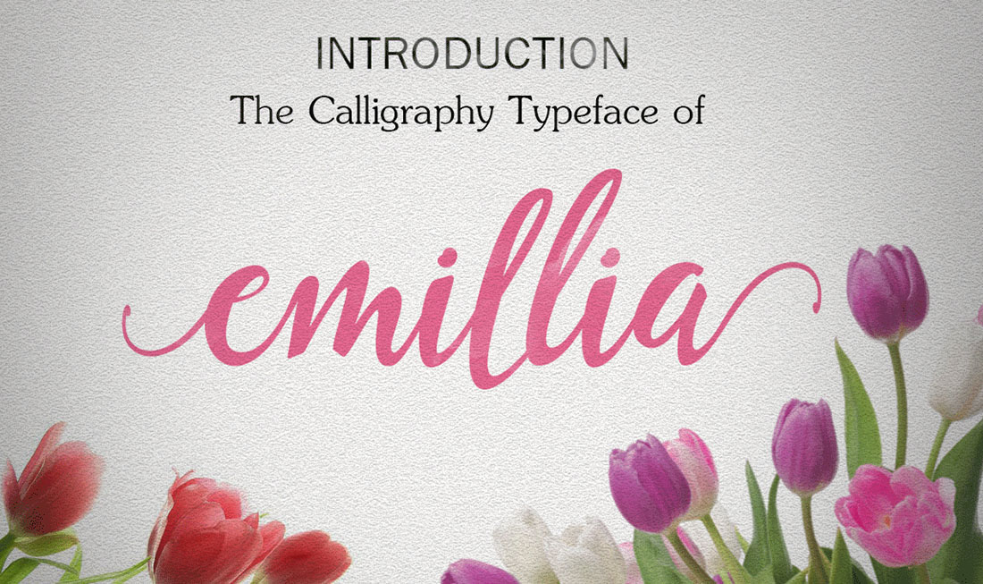 Emillia is a brush script that is beautiful and unique, it is a model of modern calligraphy typefaces, in combination with a calligraphy writing style. Can be used for various purposes.such as headings, logos, wedding invitation, t-shirt, letterhead, signage, lable, news, posters, badges etc. To enable the OpenType Stylistic alternates, you need a program that supports OpenType features such as Adobe Illustrator CS, Adobe Indesign & CorelDraw X6-X7.