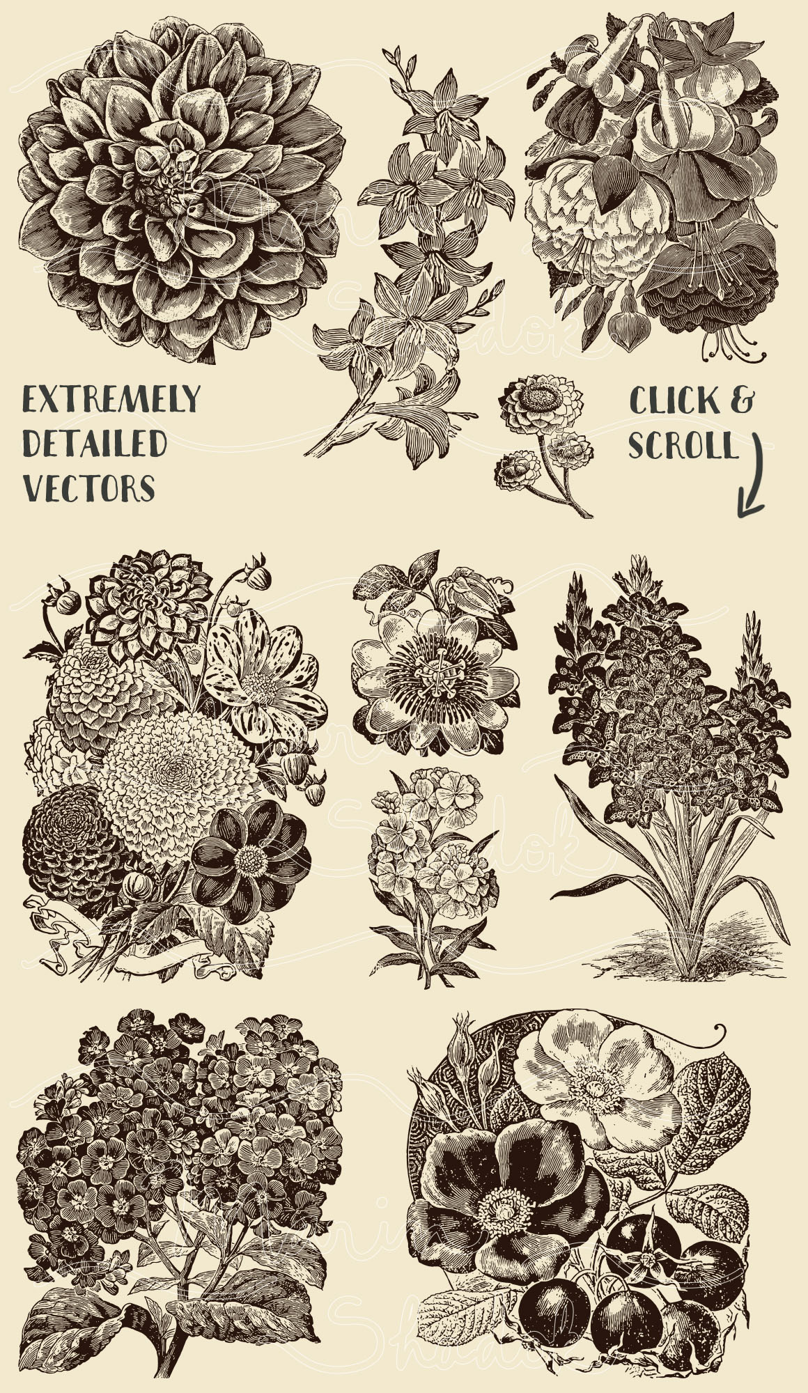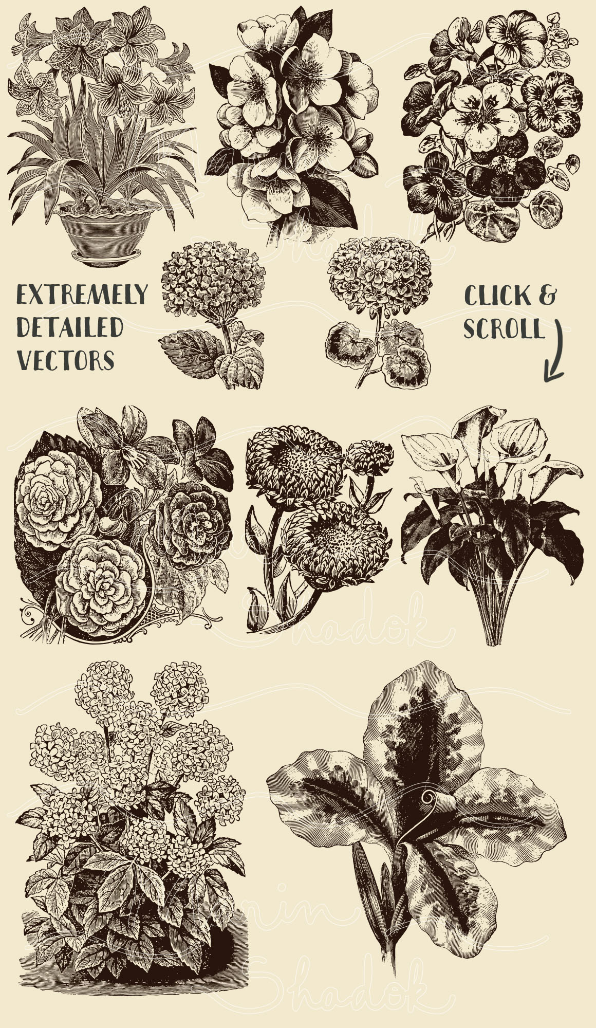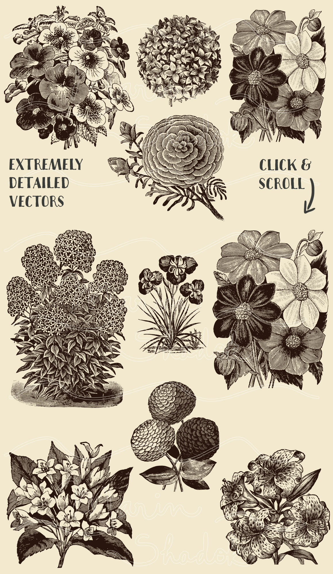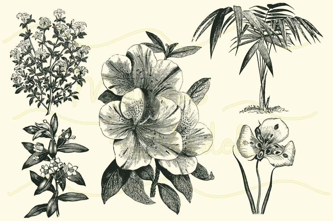 D12. 30 Vintage Floral Vectors by Marin Shadok
