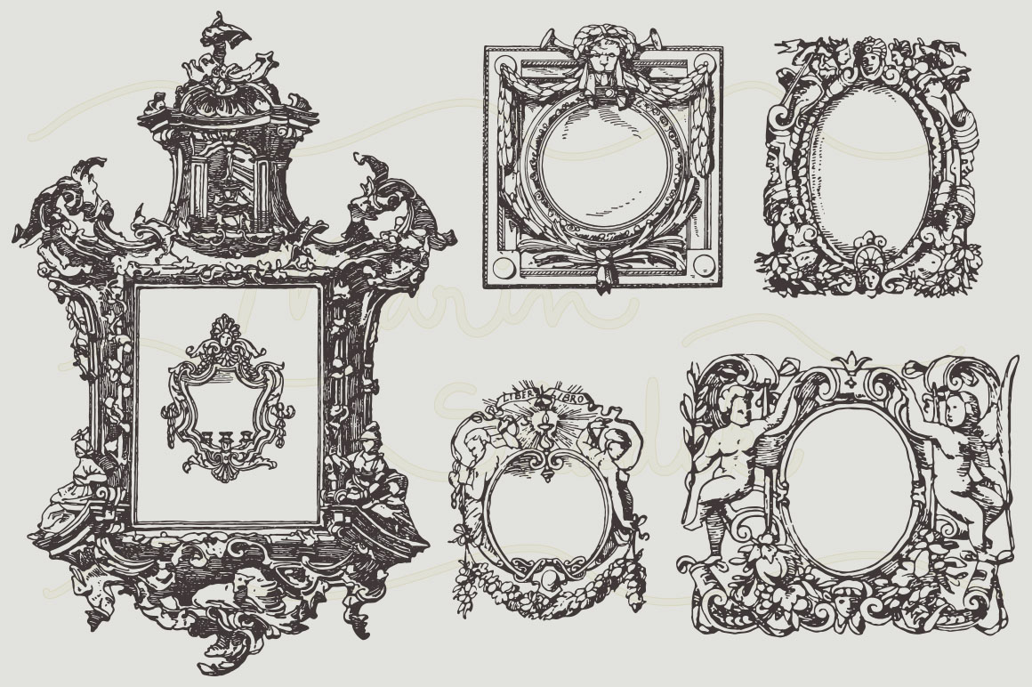D13. Baroque Frames Vector Pack by Marin Shadok