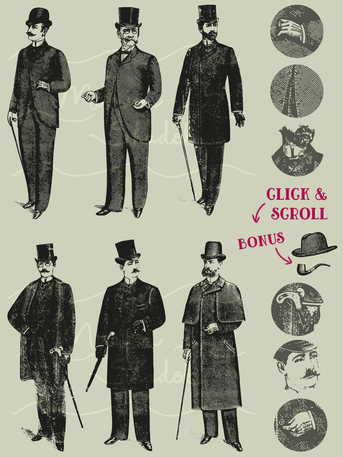 This pack includes 6 vector gentlemen + 2 bonus objects / ai & eps.