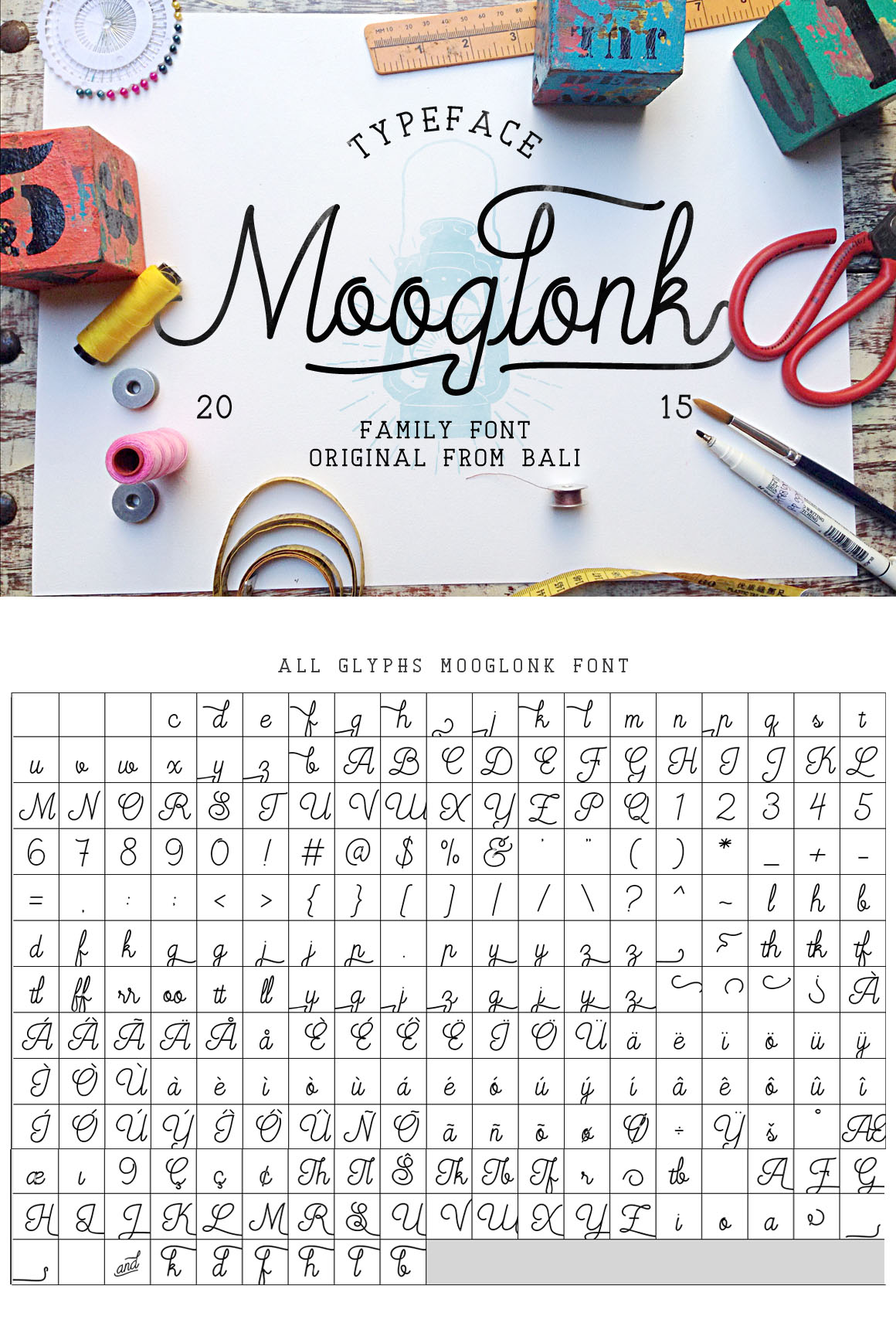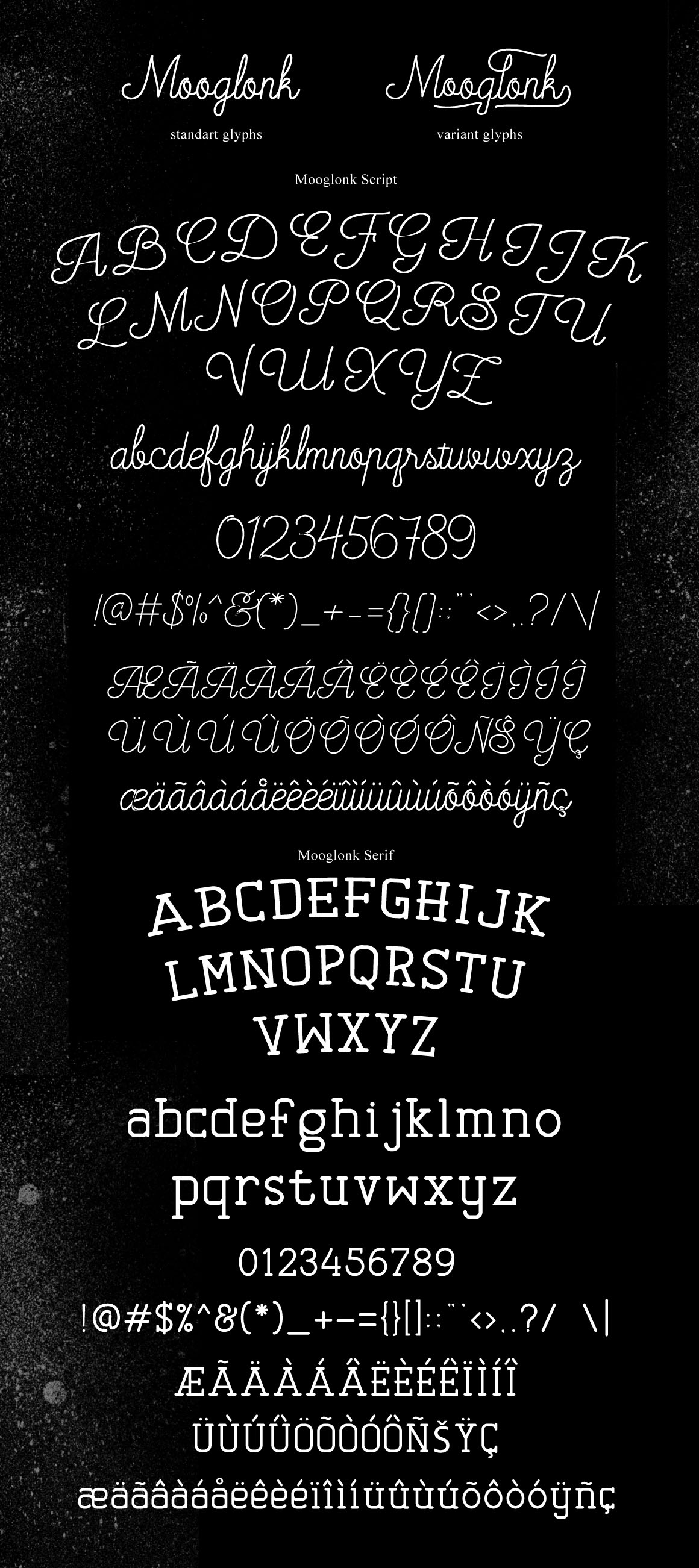 Mooglonk script using mono line elegant classic style, besides a lot of selection and its variant glyphs include miraculous ornament glyphs. All fonts includes a full set of capital and lowercase letters, as well as multi-lingual support, currency figures, numerals, and punctuation.