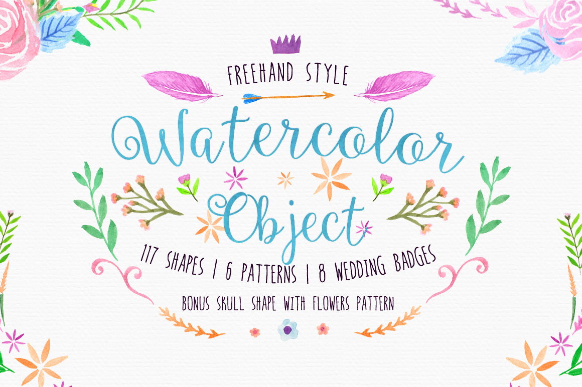 D1. Freehand Watercolor Style Objects by Alit Design