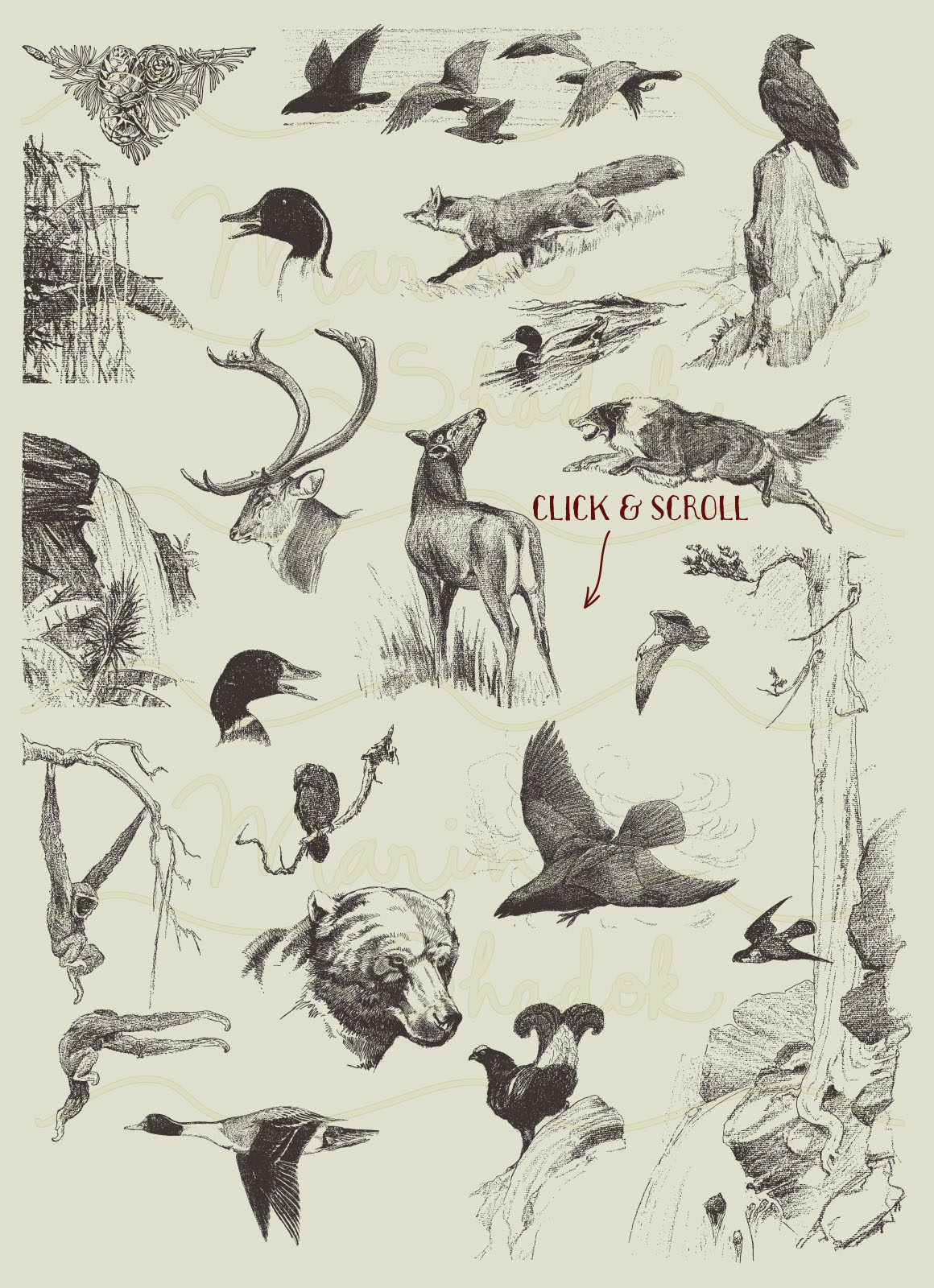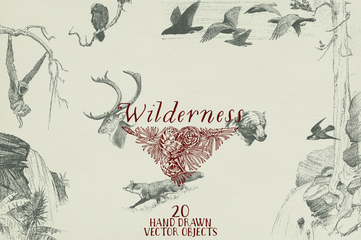 D10. Wilderness Hand Drawn Vectors by Marin Shadok