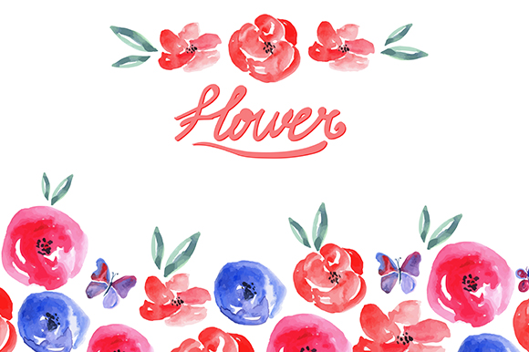 Beautiful floral background with pink and blue flowers. Watercolor flowers, seamless and floral elements in the vector. All elements are grouped and can be changed of your choice. Floral elements can be used for invitations cards, wrapping paper, backgrounds and wallpapers.