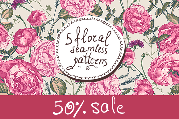 Beautiful Vintage Seamless Roses Background Roses pattern, romantic flowers pattern. Zip file contains 5 EPS10 vector files and JPEG images 5000×5000 px 72 dpi сomposition patterns in different colors.