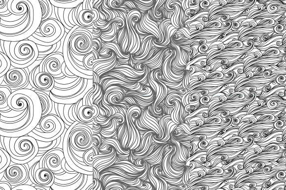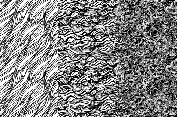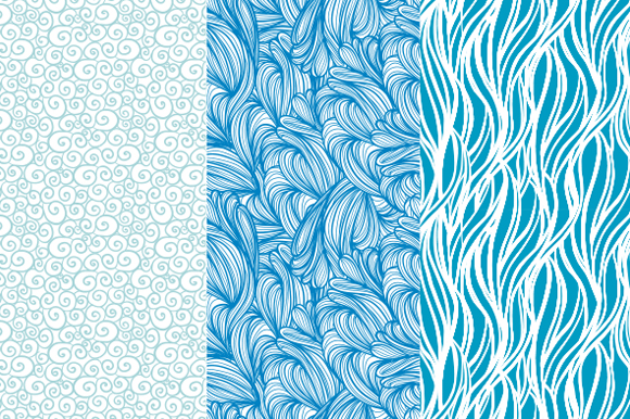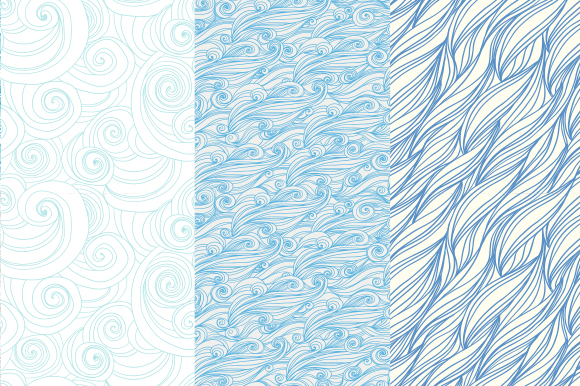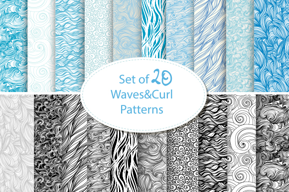 Set of 20 blue, black and white seamless waves and curls backgrounds. Zip file contains 2 EPS10 vector files and JPEG images 5000×5000 px 72 dpi сomposition patterns in different colors.