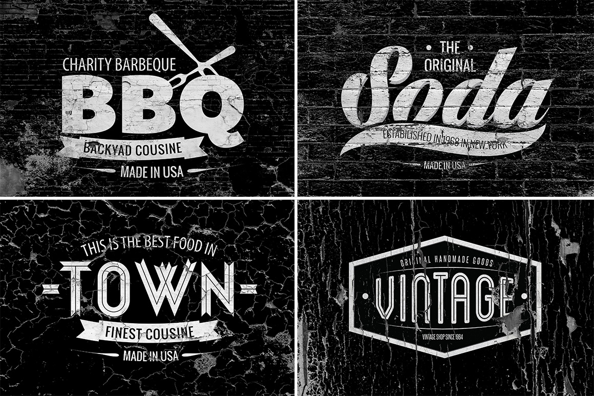 With this kit you can create retro look like ads. You can also use it for logos, signs and badges. Very easy to use via smart objects and colors selectors.