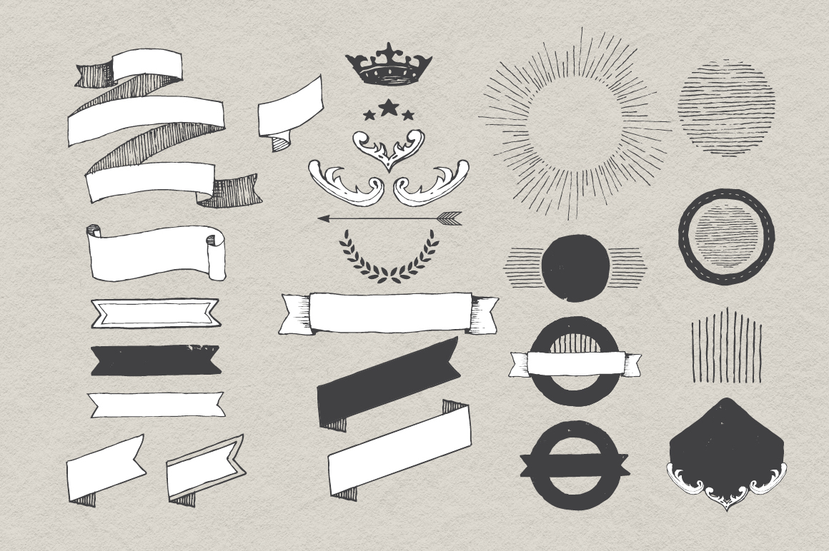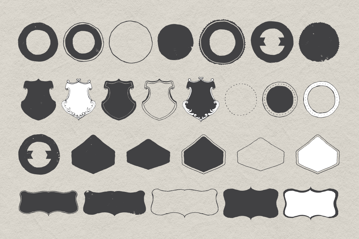 This DIY badge set is perfect to use as is, or build your own combinations for a unique, authentic hand drawn look. All elements are delivered as vector ai and eps files, as well as high-resolution png files. This set has a wonderful rustic feel which works great for logos, stationery, websites and more! You’ll receive: 11 x banners, 9 x complementing decorative elements, 31 x badges, insignia, circles and frames. Combined, you could create a huge set of badges making this pack a perfect addition to your designers toolkit.