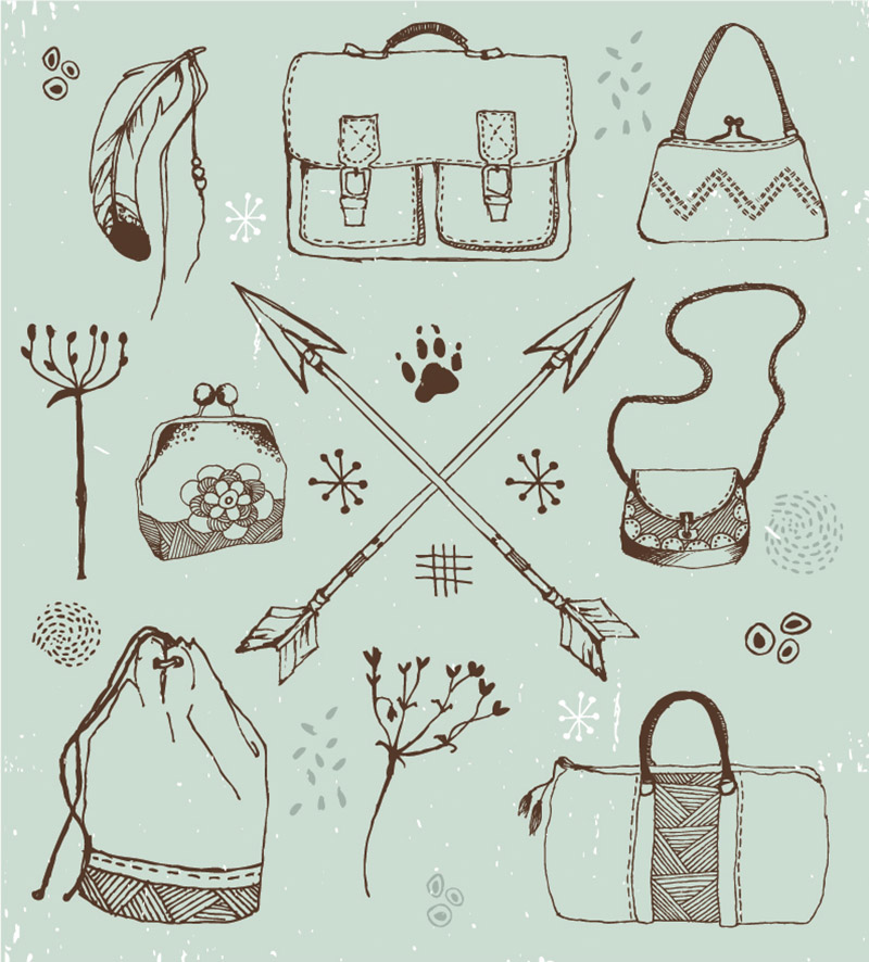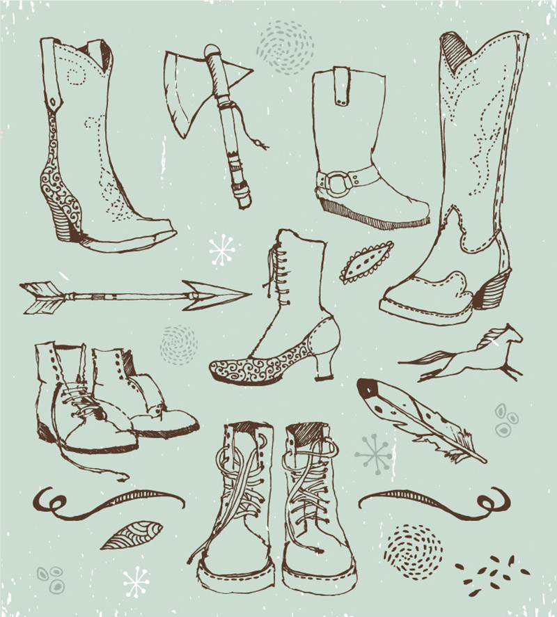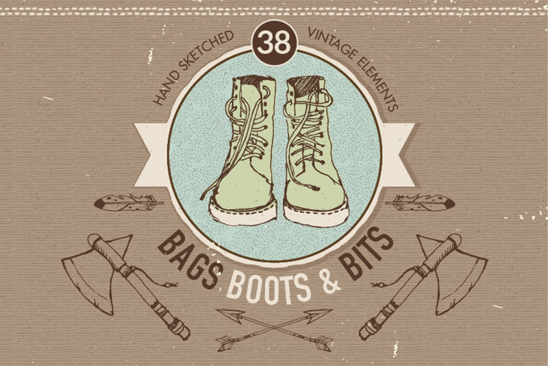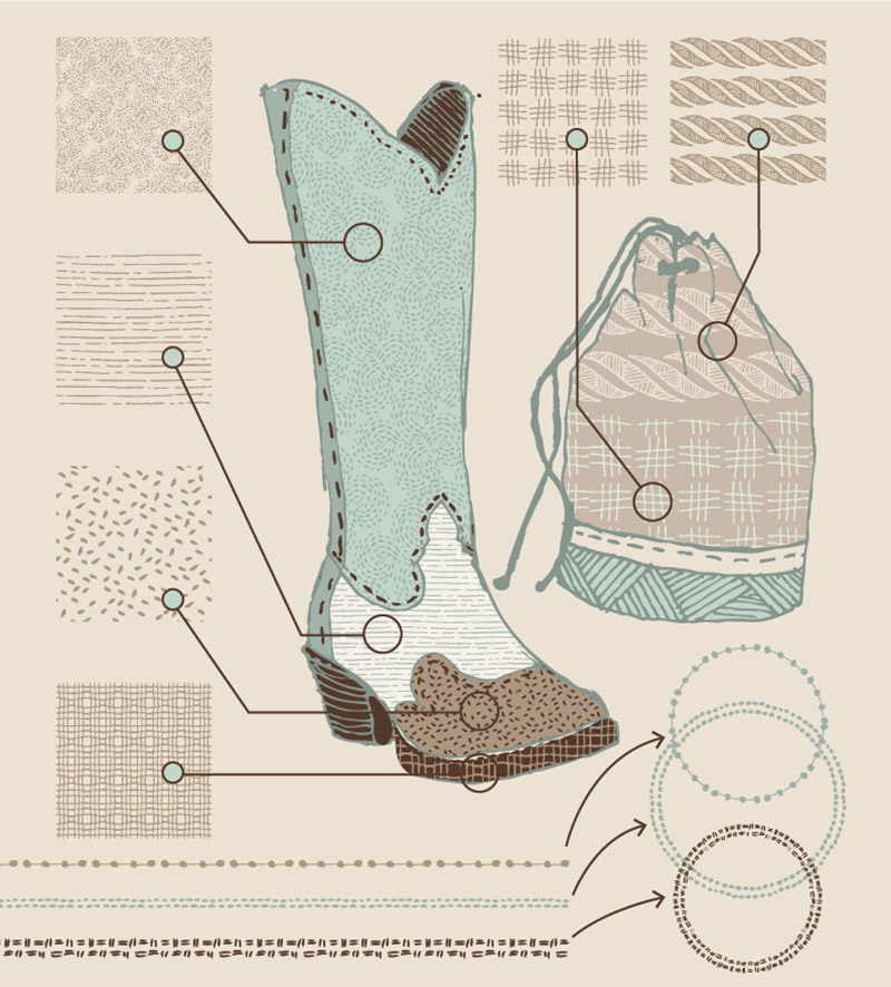 I just love fashion illustrations, so sketching clothing and accessories is a really fun thing for me to do! This set features great rustic boots, bags and elements you can use to create that authentic vintage look. Also looks fantastic used with a pastel color palette, great for blog branding. Perfect for infographics, blogs, posters, flyers, logos and much more. The 6 bonus hand-drawn textures are seamless, simply change the color to your choice and pop them into your swatches panel for effortless backgrounds. If you don’t have Adobe Illustrator software, don’t despair, I’ve included .png files of all the elements and created 12″ x 12″ pattern backgrounds you can edit in Photoshop. All the elements come in black vector files, so changing color and and size will be effortless.