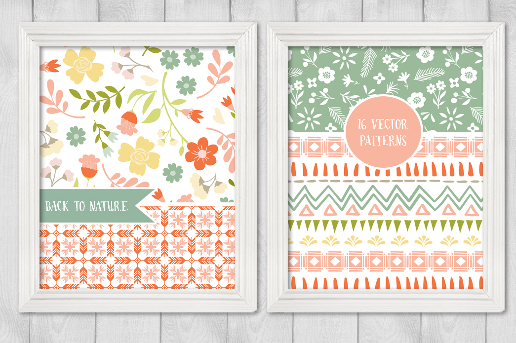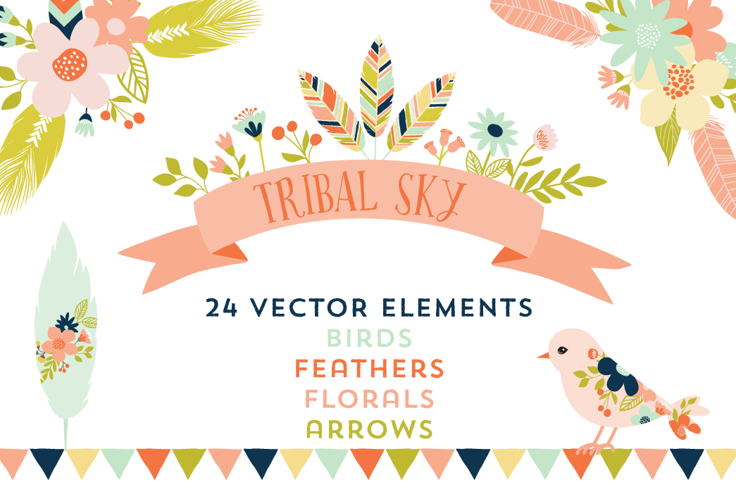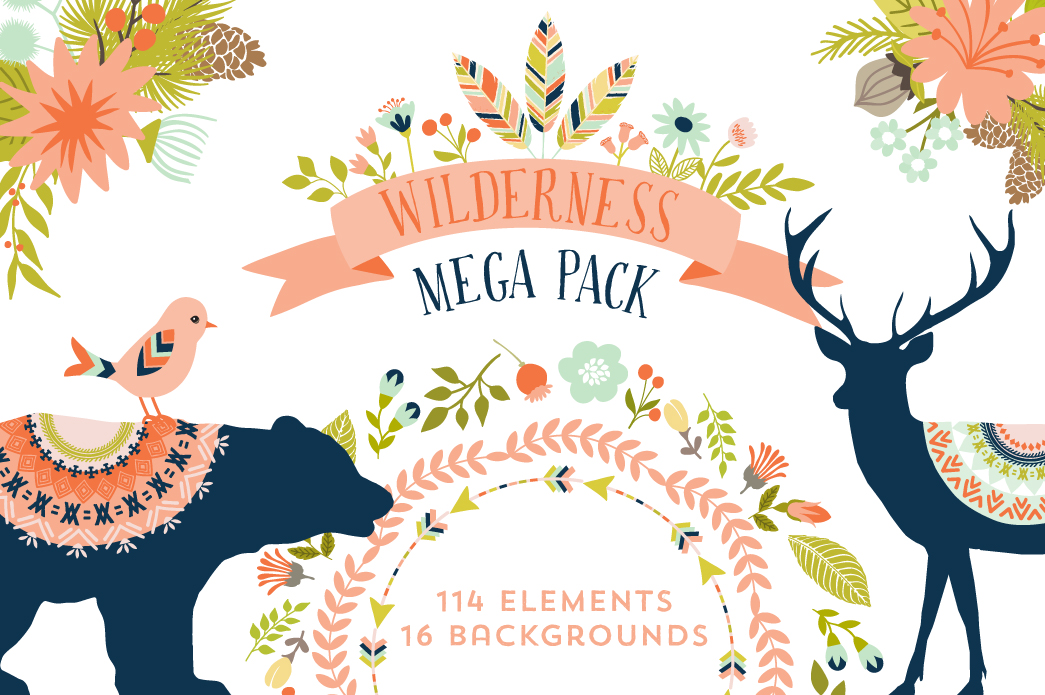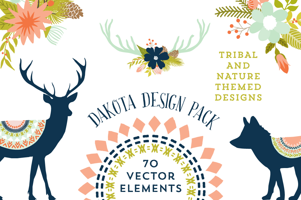 This is a gorgeous collection of rustic floral, tribal and nature themed vector elements combining 4 packs with a 40% discount. There are a total of 114 elements and 16 background patterns that all coordinate nicely.