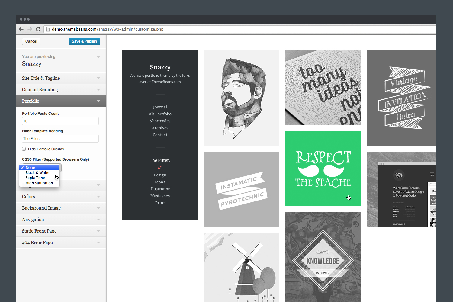 A super nice gallery & portfolio theme for creatives alike. Built beautifully – inside & out – Snazzy is a fully responsive, retina capable, highly customizable WordPress Theme from none other than the ThemeBeans crew. Get your website up and running in minute alone with the greatest ThemeBeans WordPress theme yet.