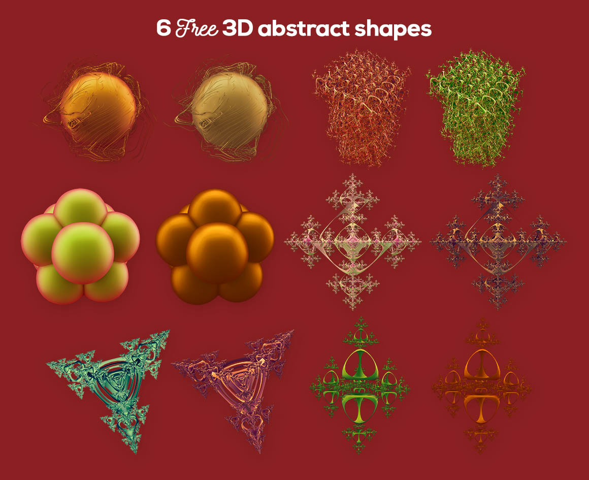 6 free hi-res abstract 3D objects or shapes (3000 x 3000) in transparent PNG format from Cruzine Design. Download and enjoy 😉