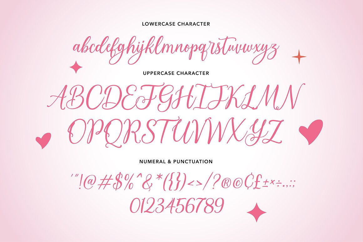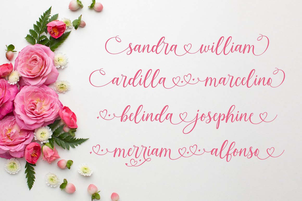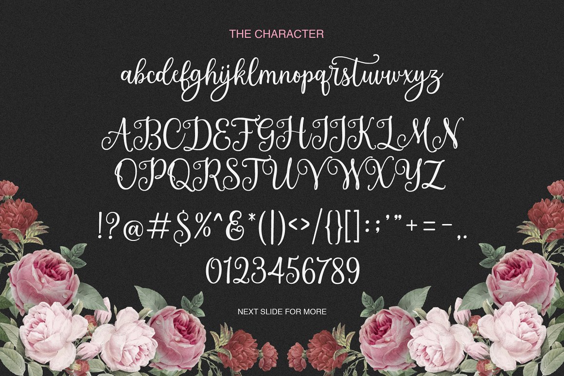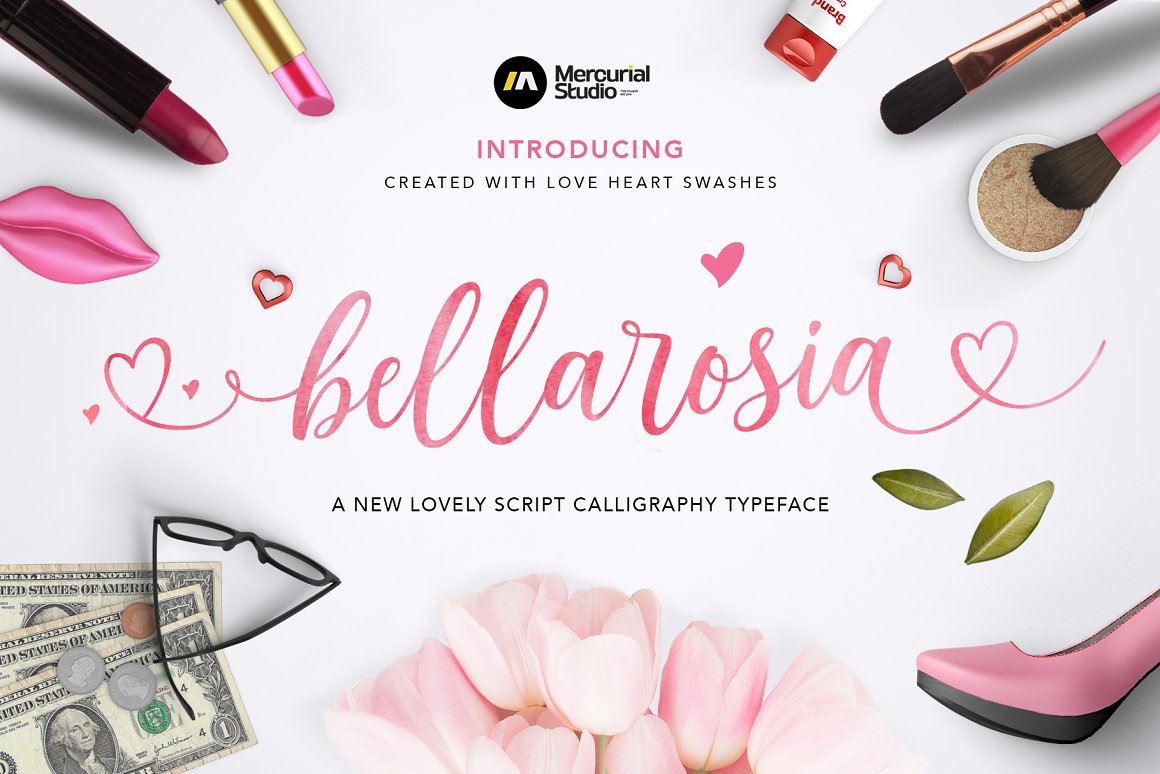Bellarosia is lovely script calligraphy made with a touch of sweet, lovely and charming attraction that adds to the impression of a beautiful and elegant. a charming typeface and So beautiful on invitation like greeting cards, sublimation, wedding invitation, branding materials, business cards, quotes, posters, headings, signature, logos, t-shirt, letterhead, signage, lable, news, posters, badges and more. Imagine you get a beautiful and very charming font in the design you make. that would be the answer you wanted right now. Bellarosia has a script typeface and extra letters that allows you to be more free in designing. Hey..look at this. besides you get a font with over 150 alternates, ligatures and swashes. let’s imagine what you can do with all that. yeah that’s awesome.