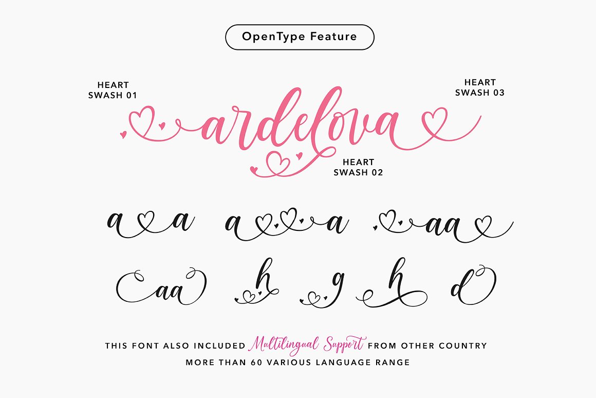 Uppercase & Lowercase, International Languange & Symbols Support Punctuation & Number PUA Unicode Range, Standard Ligatures, Discretionary Ligatures, Stylistic Alternates, Swash & many more character.
