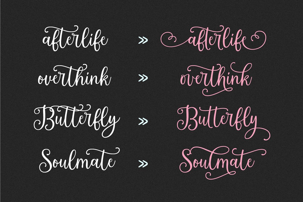 Southlight comes with full set of uppercase and lowercase letters, multilingual support, symbols, numerals, punctuation. Ligatures and many more alternates