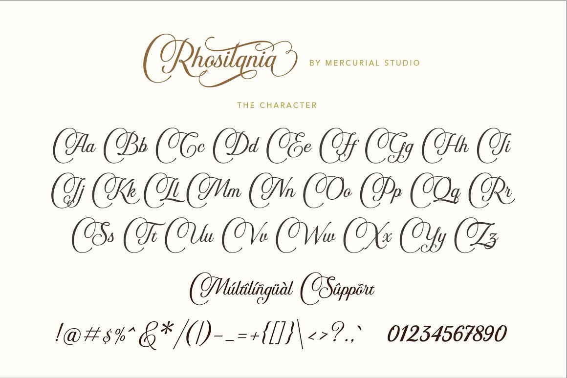 Hello.. Rhositania is a simple and classy font, comes with a variety of uniqueness and beauty, opentype features such as stylistic alternates, initial and final forms, and ligatures. We keep this font looking elegant, classy, easy to read, stylish, easy to remember, and easy to use. Rhositania Font is the right choice for watermarks on photography, signature or signature logo design, quotes, album covers, business cards, and many other design projects. From business cards to photo watermarks, Rhositania are here to increase your work to the highest level.