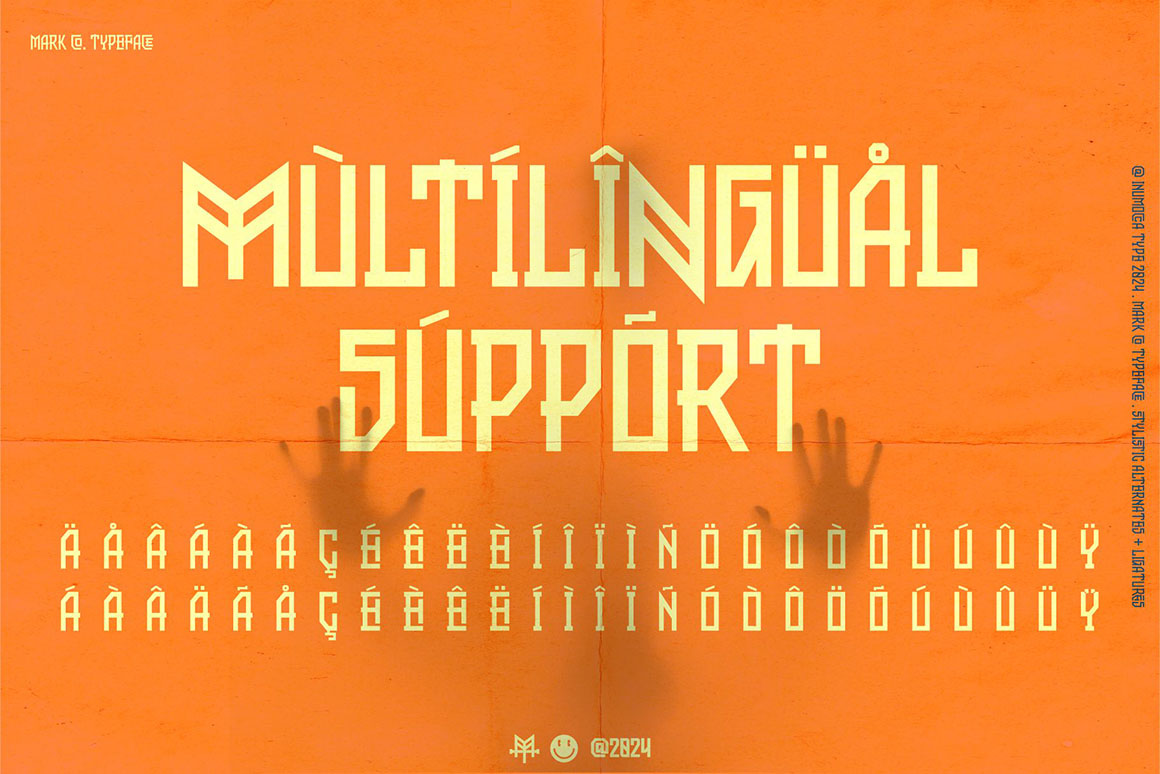 Brand new unique & creative style typography bundle with 6 multilingual display font sets! All these fonts are trendy, sharp & modern so you can use it for any kind of futuristic style branding projects or T-shirt designs 😉